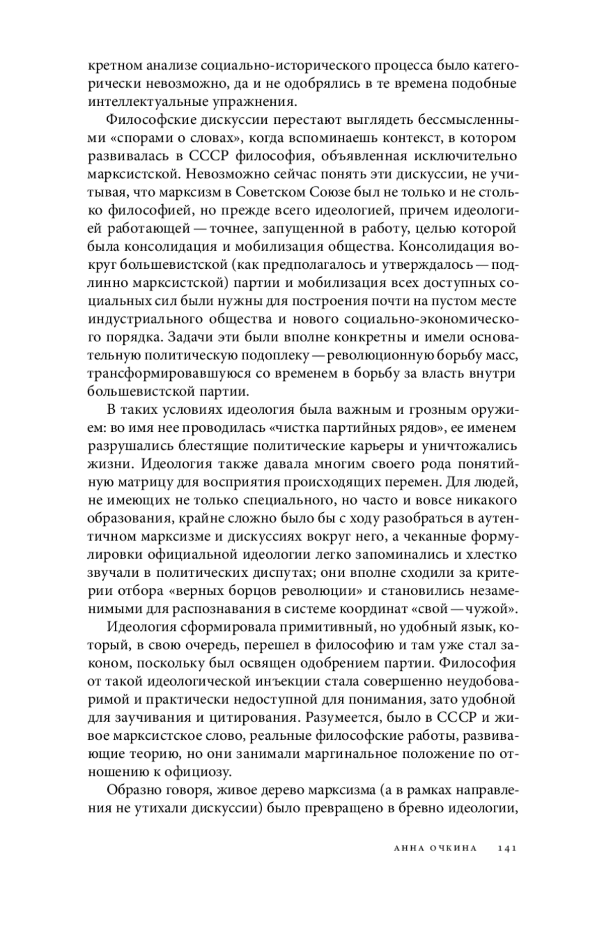 Статья посвящена философии Эвальда Ильенкова, ее историкокультурному контексту и ее актуальности в наши дни. Ильенков известен своеобразным решением проблемы идеального в рамках марксизма. Концепция идеального — центр его философского учения, из нее он выводил свои педагогические, психологические, эстетические теории. В советские времена концепция идеального у Ильенкова вызвала дискуссию, в рамках которой против философа и его школы выступил Давид Дубровский, отстаивавший «субъективность идеального». На наш взгляд, этот спор отражал противостояние двух систем ценностей в советской цивилизации, одна из которых господствовала в эпоху оттепели, другая — в эпоху застоя. Оттепель была амбивалентной: наряду с элементами либерального марксизма, из которого потом выросла перестройка, в ней присутствовала традиция, уходящая через Ленина к классической культуре. Застой ознаменовал победу мещанства, идеологии черного рынка, торгашества, цинизма, разочарования в идеалах под покровом лицемерного признания догматического официоза. Это коррелировало с позитивистским отрицанием универсальной Истины, утверждением релятивизма, «субъективности идеального». Длинная тень застоя в виде ценностного релятивизма и цинизма лежит и на современной постсоветской периферийно-капиталистической российской культуре, и потому ильенковская философия идеального не теряет актуальности.