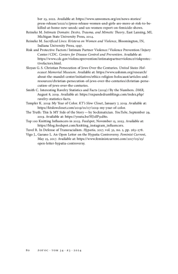 37. Reineke M. Sacrificed Lives: Kristeva on Women and Violence. Bloomington, IN: Indiana University Press, 1997.
