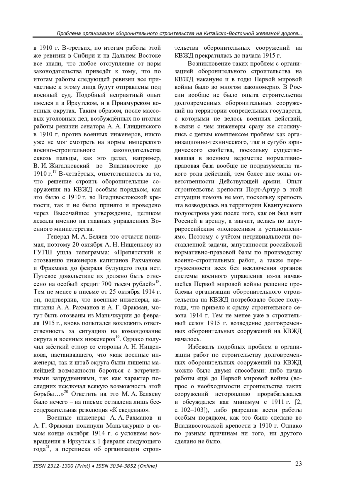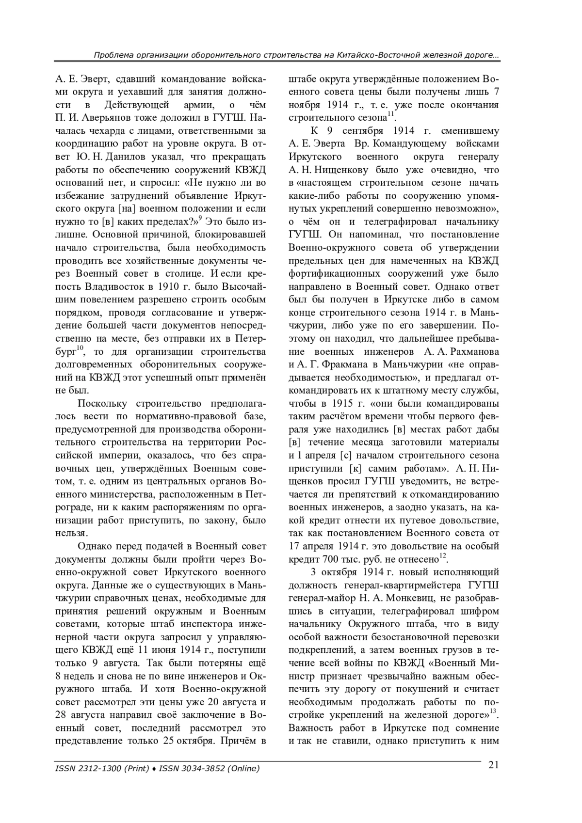 В последнее время исследователи уделяют всё больше внимания не только истории Китайско-Восточной железной дороги (далее – КВЖД) [1], но и вопросам обеспечения безопасности дороги методами полевой и долговременной фортификации [2; 3]. Однако непосредственно проблема организации строительства долговременных оборонительных сооружений на КВЖД накануне и в годы Первой мировой войны ещё не исследовалась.