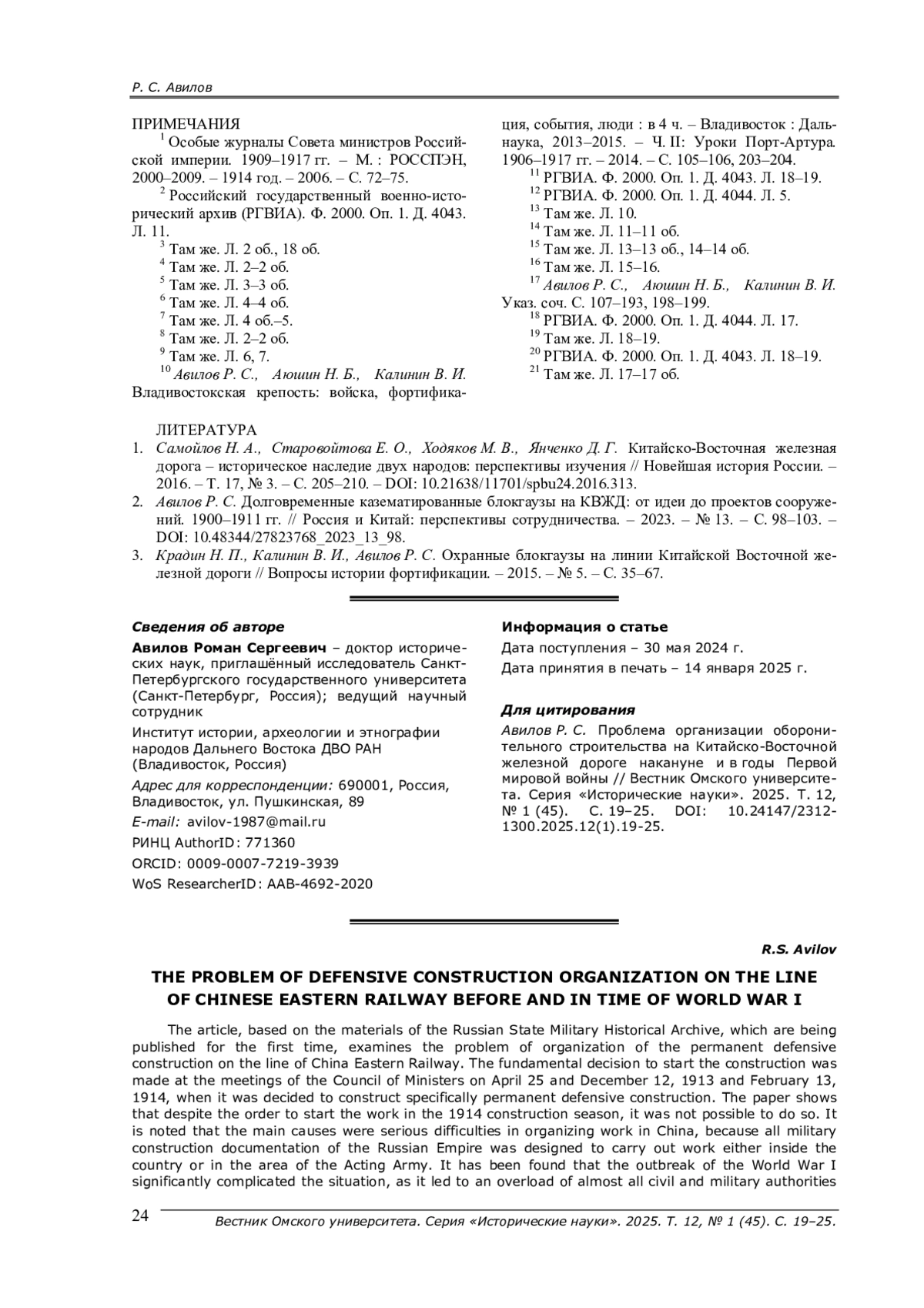 2. Авилов Р. С. Долговременные казематированные блокгаузы на КВЖД: от идеи до проектов сооружений. 1900-1911 гг. // Россия и Китай: перспективы сотрудничества. - 2023. - № 13. - С. 98-103. -. DOI: 10.48344/27823768_2023_13_98