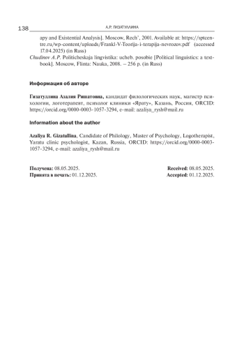 4. Нуркова В.В. Принцип стимульной детерминации воспоминаний и мнемическая свобода личности // Учёные записки Института психологии РАН. 2025. - № 5. - С. 3-13. DOI: 10.38098/proceedings_2025_05_01_02 EDN: HJQOOZ