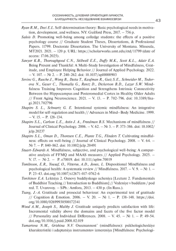 42. Lyon A.R. Mindfulness, Self-Compassion, Gratitude, and Burnout: A Structural Equation Model // Dissertations for Ph.D. 896. University of Northern Colorado. 2022. - 147 p. URL: https://digscholarship.unco.edu/dissertations/896 (date of access: 1.07.2025).