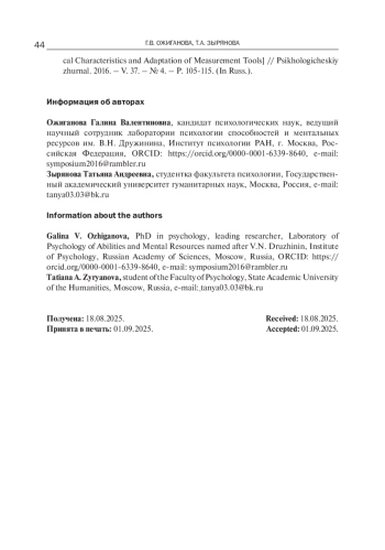 2. Губанов А.В., Зотова Л.Э., Сидячева Н.В. Сокращённая версия русскоязычной шкалы диспозиционной осознанности (CAMM) для подростков // Вестник Московского государственного областного университета. Серия: Психологические науки. 2021. - № 1. - С. 6-19. DOI: 10.18384/2310-7235-2021-1-6-19
