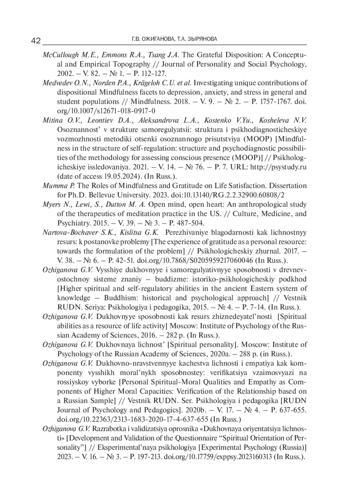 10. Ожиганова Г.В. Духовные способности как ресурс жизнедеятельности. М. Изд-во “Институт психологии РАН”, 2016. - 282 с.
