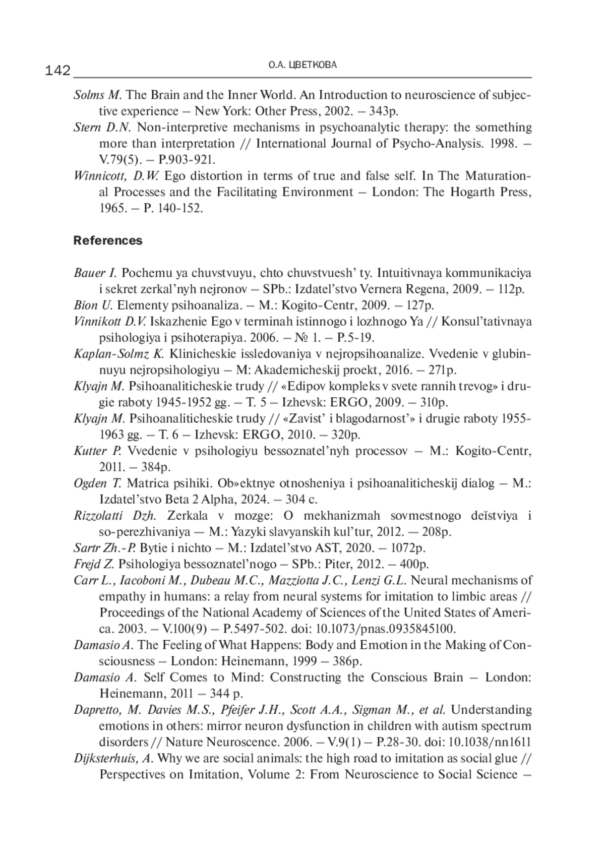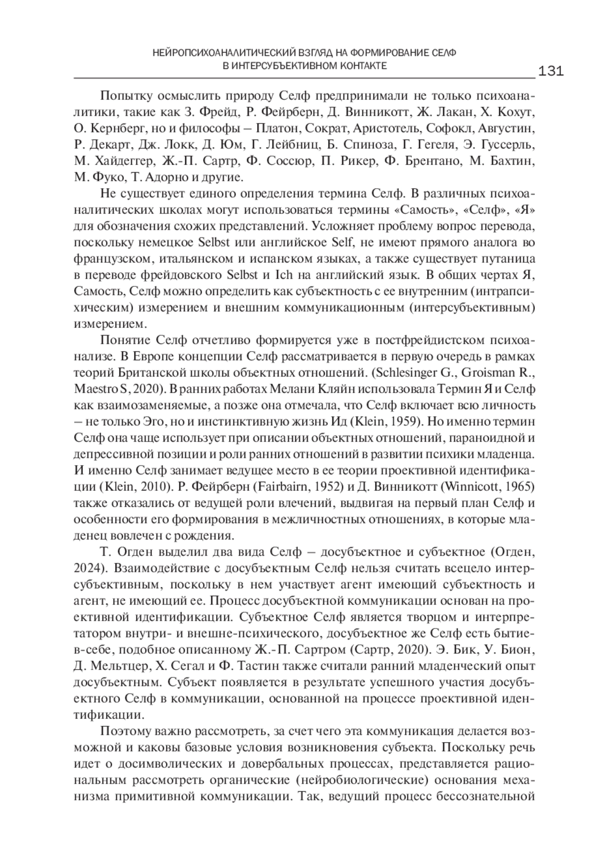36. Schlesinger G., Groisman R., Maestro S. Self // IPA Inter-regional encyclopedic dictionary of psychoanalysis, 2020. - P.742-815. - https://online.flippingbook.com/view/544664/5.