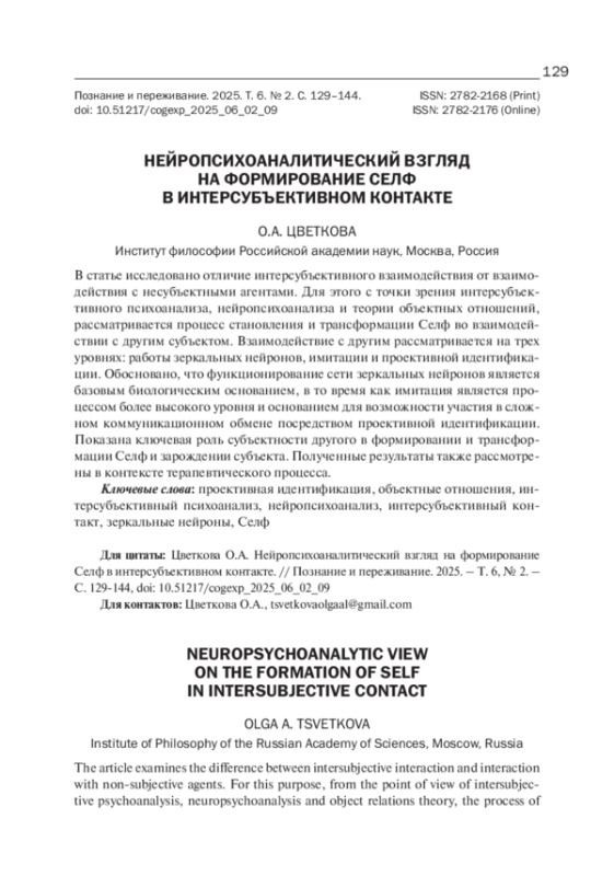 34. Roeckerath K. Projective Identification: A Neuro-psychoanalytic Perspective // Neuropsychoanalysis. 2002. - V.4(2) - P. 173-181. DOI: 10.1080/15294145.2002.10773395