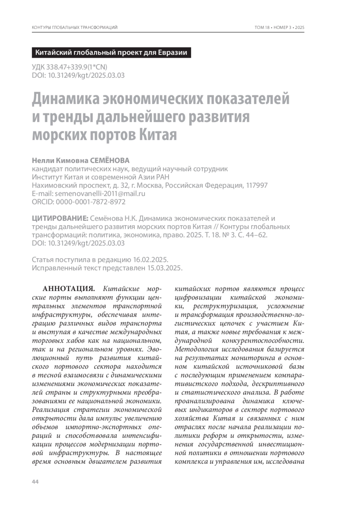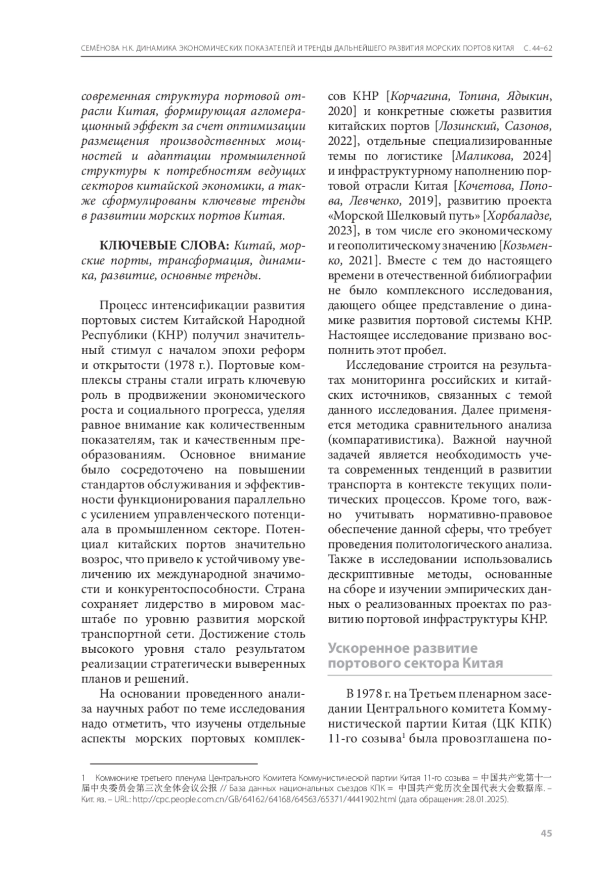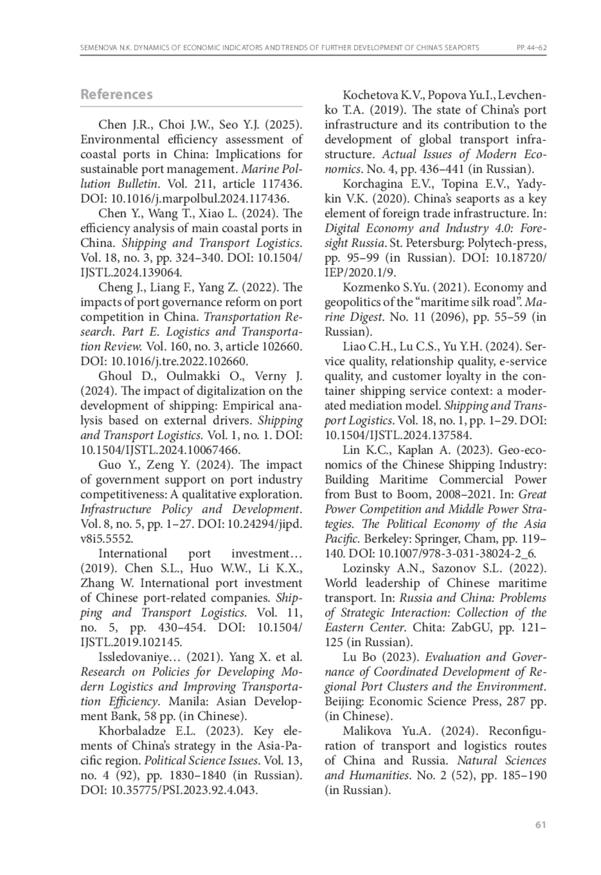 6. Семёнова Н.К. Морские порты Китая: современное состояние и перспективы развития. - Москва : ИВ РАН, 2023. - 472 с.