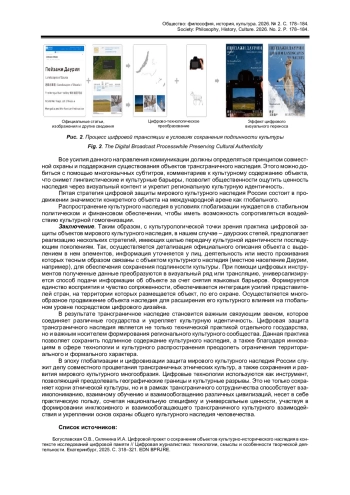 10. Цифровизация объектов историко-культурного наследия / Т.А. Волкова [и др.] // Передовые исследования Кубани. Краснодар, 2025. С. 236-240. EDN: WGFGMA