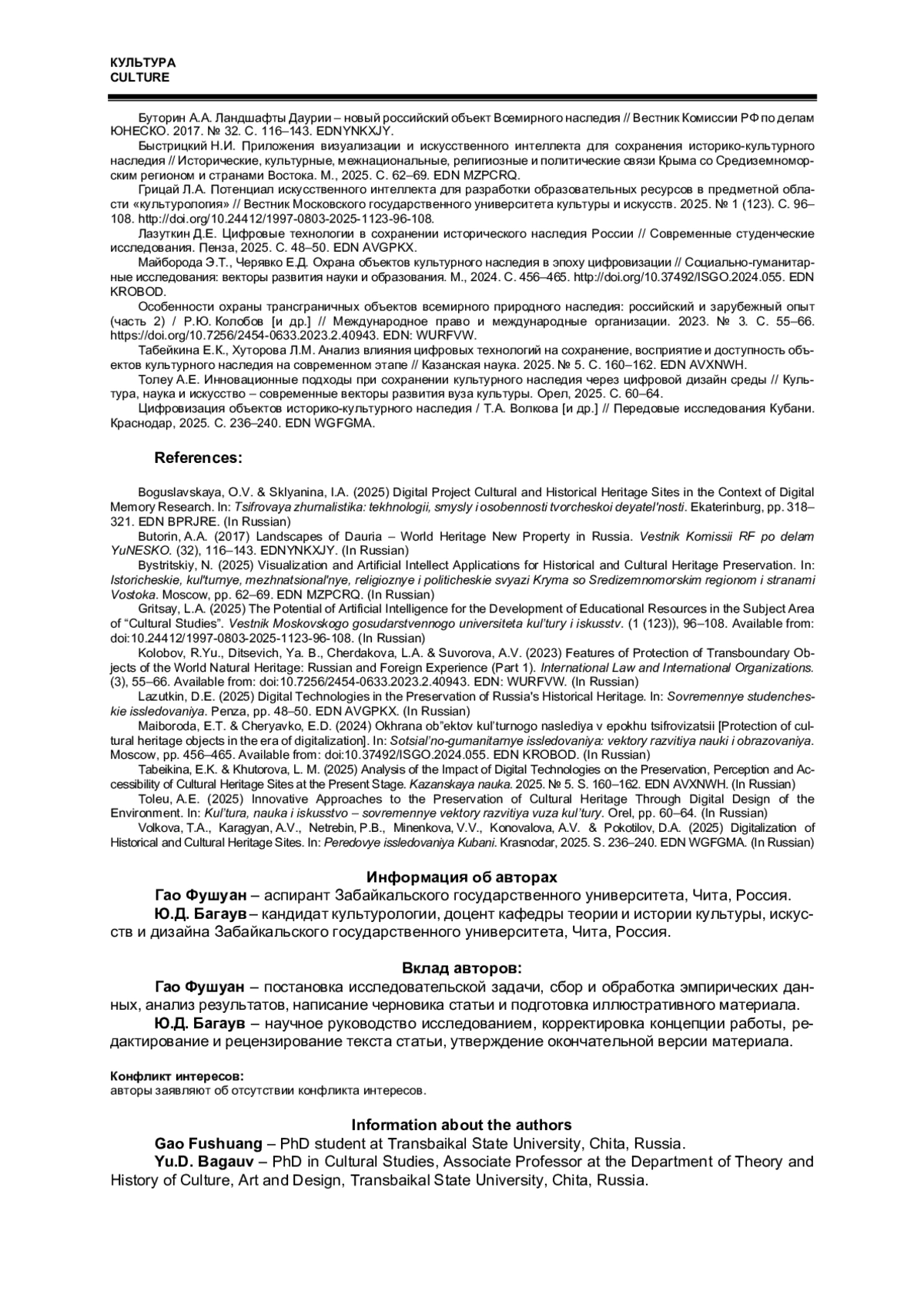 В условиях интенсивной цифровизации всех сфер жизни защита мирового культурного и природного наследия также требует обращения к использованию инновационного потенциала цифровых инструментов и искусственного интеллекта.