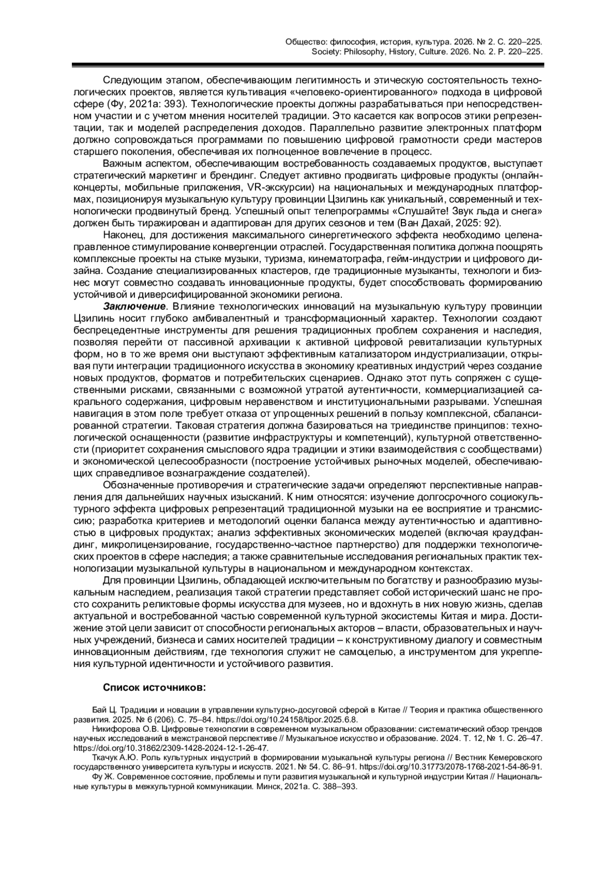 6. Чжан Ц., Мазурина Н.Г. Сохранение ценностей традиционной музыкальной культуры Китая в условиях глобализации // Педагогика искусства в целях устойчивого развития общества. Минск, 2025. С. 665-669. EDN: ZTFUJU