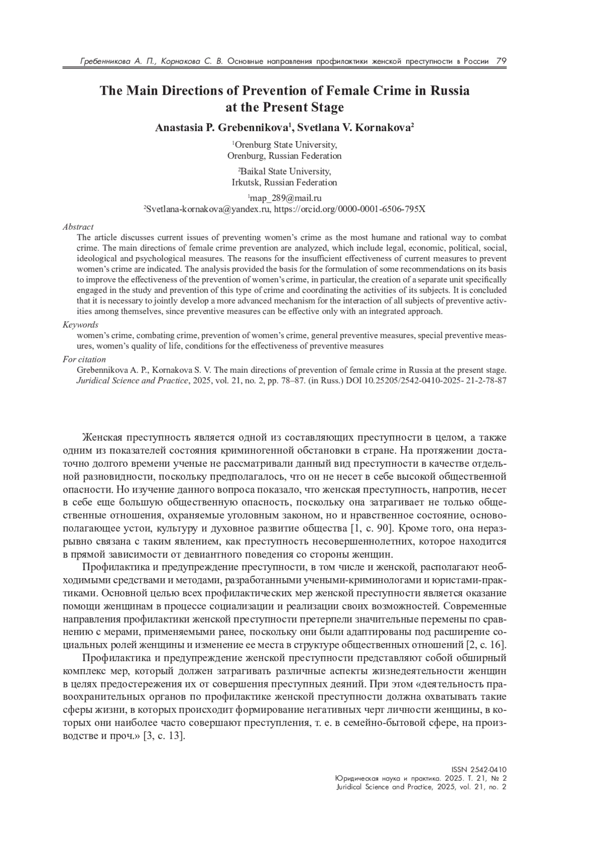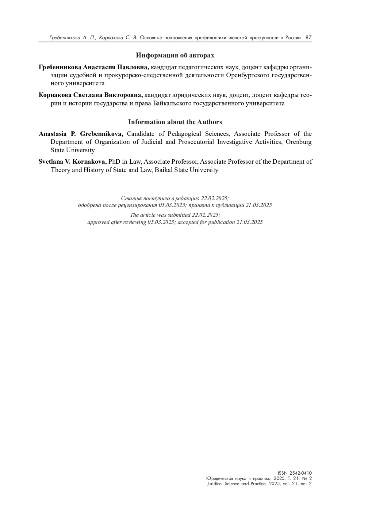 8. Пархоменко С. В., Синьков Д. В. Развитие знаний о женской преступности и ее современное состояние в России // Baikal Research Journal. 2016. Т. 7, № 5.