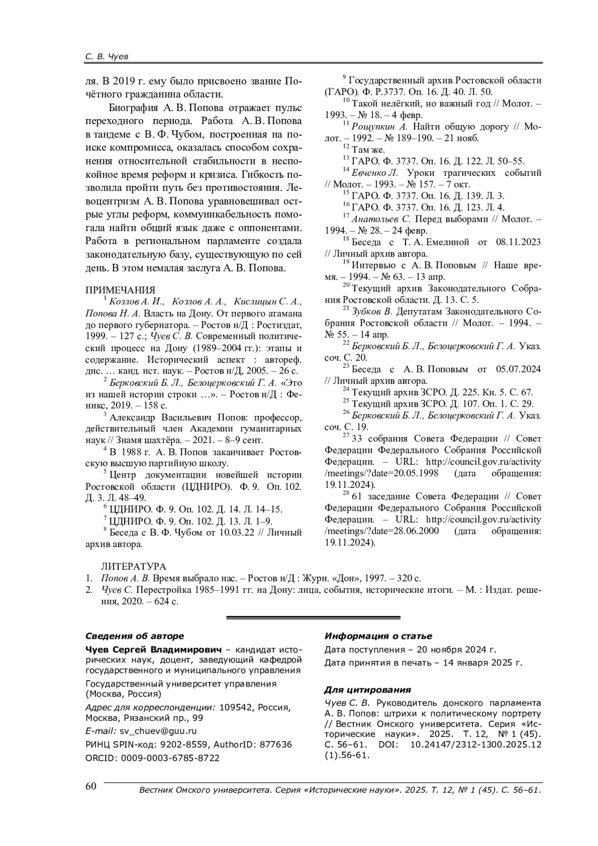 2. Чуев С. Перестройка 1985-1991 гг. на Дону: лица, события, исторические итоги. - М.: Издат. решения, 2020. - 624 с. EDN: OFGGIG