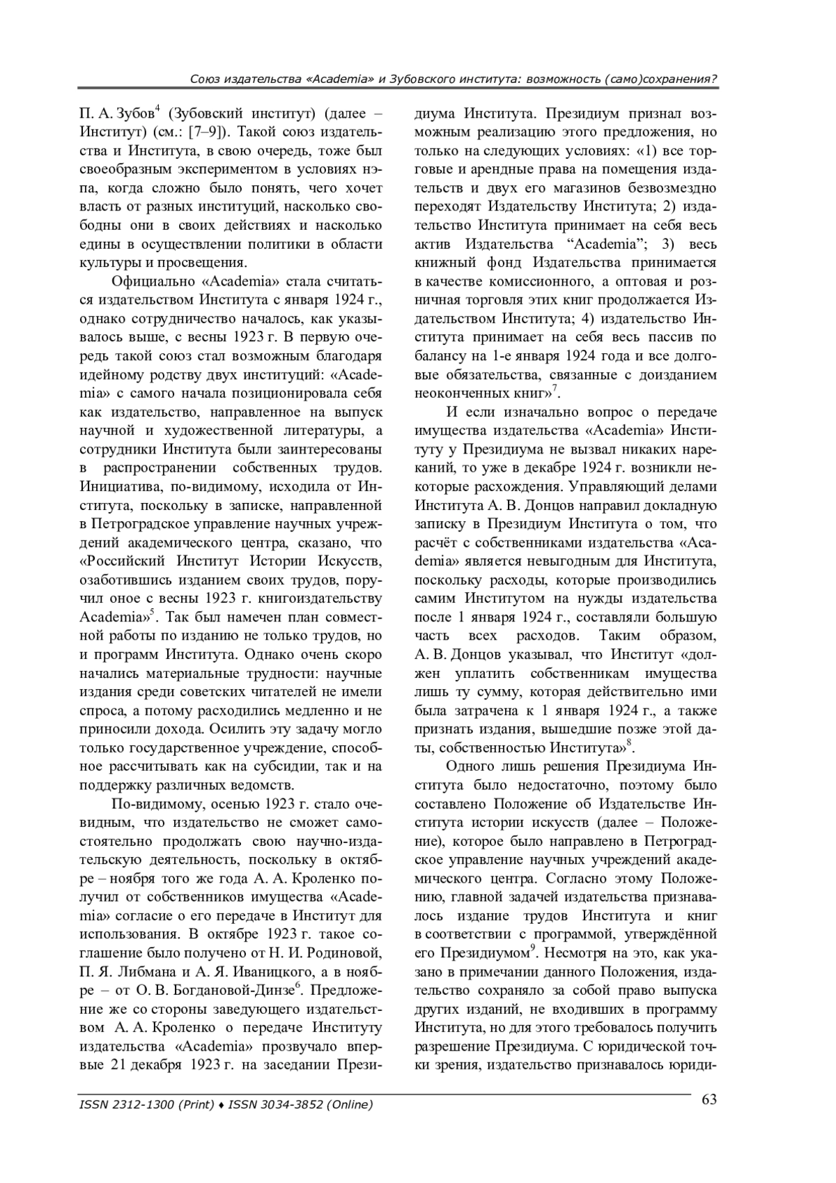 В 1920-е гг. в условиях становления новой советской реальности одной из главных проблем частных учреждений была проблема выживания и самосохранения, поиск различных организационных форм, адаптация к быстро меняющимся запросам государства и общества. В таких условиях оказались как частные издательства, так и учебные и научные учреждения [1; 2]. Исключением не стало и издательство «Academia»1 (см. также: [3–6]).