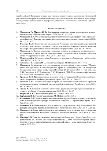4. Морозов А. А. Теория и практика толкования понятия и содержания юридической ответственности за экологические правонарушения с теоретической и практической точек зрения // Образование и право. 2025. № 3. С. 197-201.