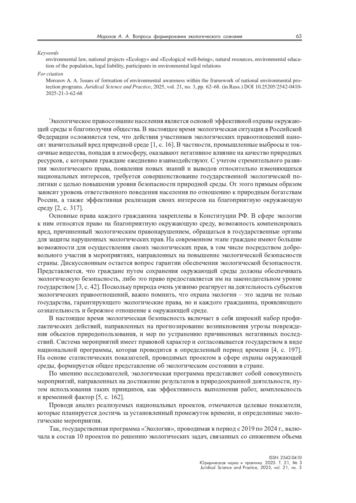 15. Морозов А. А. Право на благоприятную окружающую среду в системе конституционных ценностей Российской Федерации // Вопросы российской юстиции. 2025. № 36. С. 291- 298.