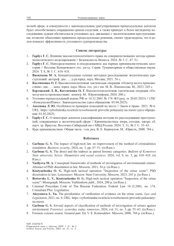 1. Гарбуз Г. С. Влияние высокотехнологичного права на совершенствование метода криминалистического моделирования // Безопасность бизнеса. 2024. № 3. С. 47-51.