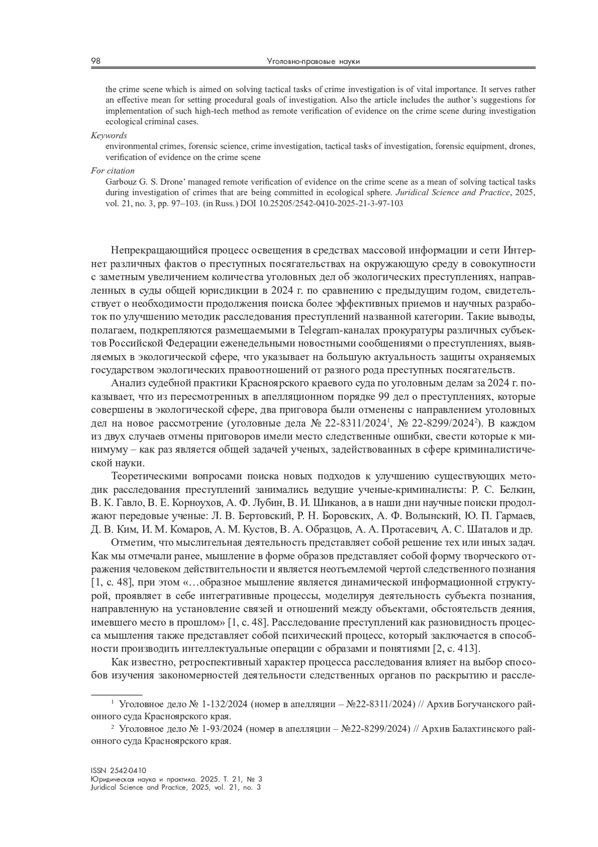 2. Гарбуз Г. С. Непосредственное и опосредованное как парные криминалистические категории // Вестник Кемеровского гос. ун-та. Серия: Гуманитарные и общественные науки. 2024. Т. 8, № 3. С. 410-418.