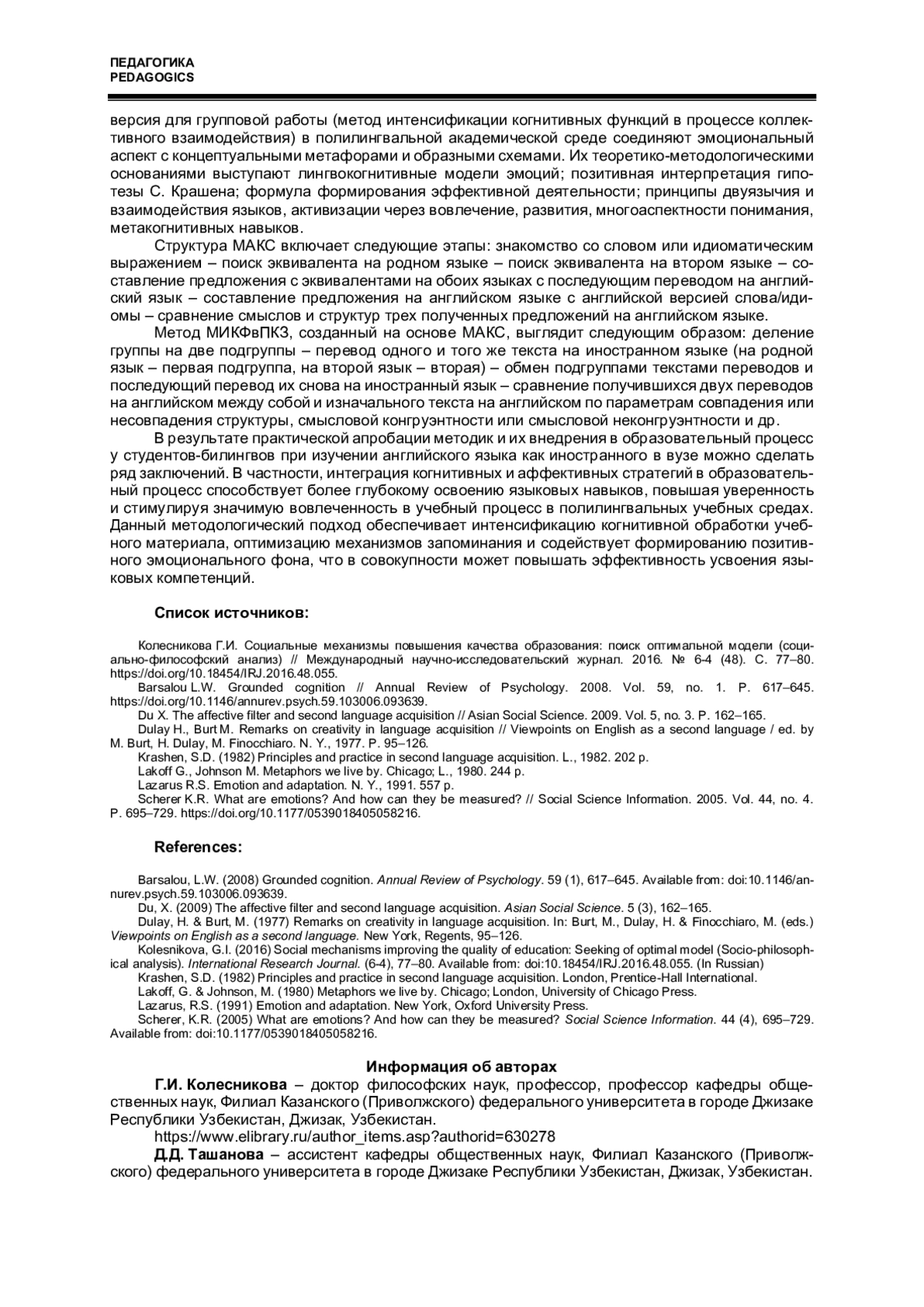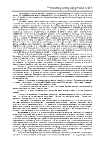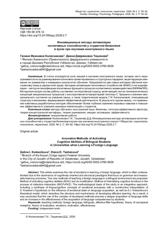 Предлагаются две новые методики обучения иностранному языку в двуязычной среде: методика активизации когнитивных способностей (МАКС) и ее модификация - метод интенсификации когнитивных функций в процессе коллективного взаимодействия (МИКФвПКЗ).