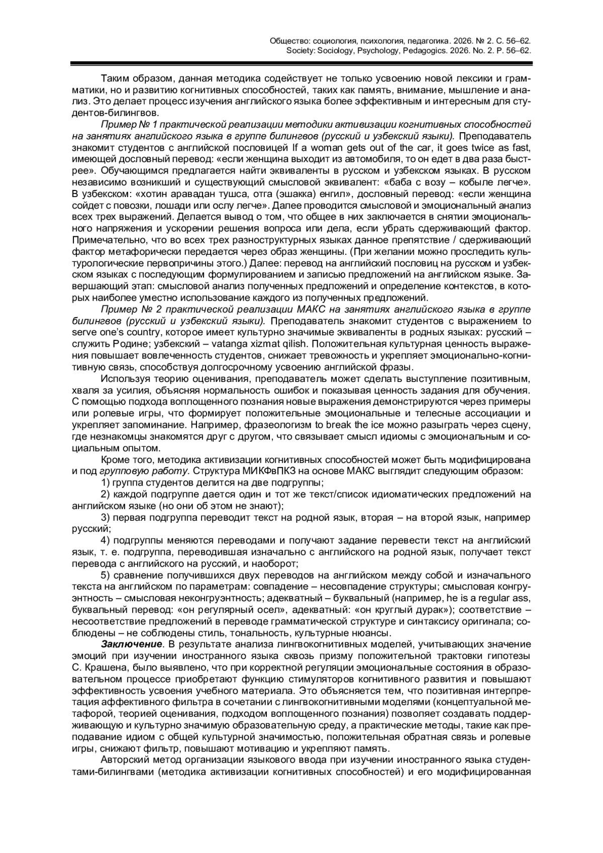 В результате сделан вывод, что применение комплекса разработанных методик обеспечивает более глубокое освоение языковых навыков и повышение эффективности усвоения языковых компетенций у студентов.