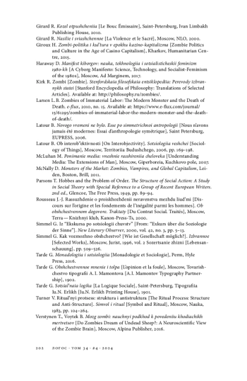 27. Larsen L. B. Zombies of Immaterial Labor: The Modern Monster and the Death of Death // e-flux. 2010. № 15. URL: https://www.e-flux.com/journal/15/61295 /zombies-of-immaterial-labor-the-modern-monster-and-the-death-of-death/.