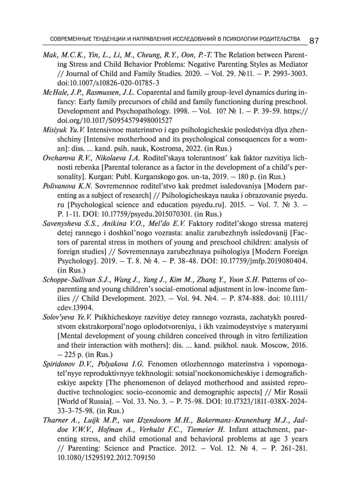 25. Mak, M. C. K., Yin, L., Li, M., Cheung, R. Y., Oon, P.-T. The Relation between Parenting Stress and Child Behavior Problems: Negative Parenting Styles as Mediator // Journal of Child and Family Studies. 2020. Vol. 29. №11. - P. 2993-3003. DOI: 10.1007/s10826-020-01785-3 EDN: AJSNNU