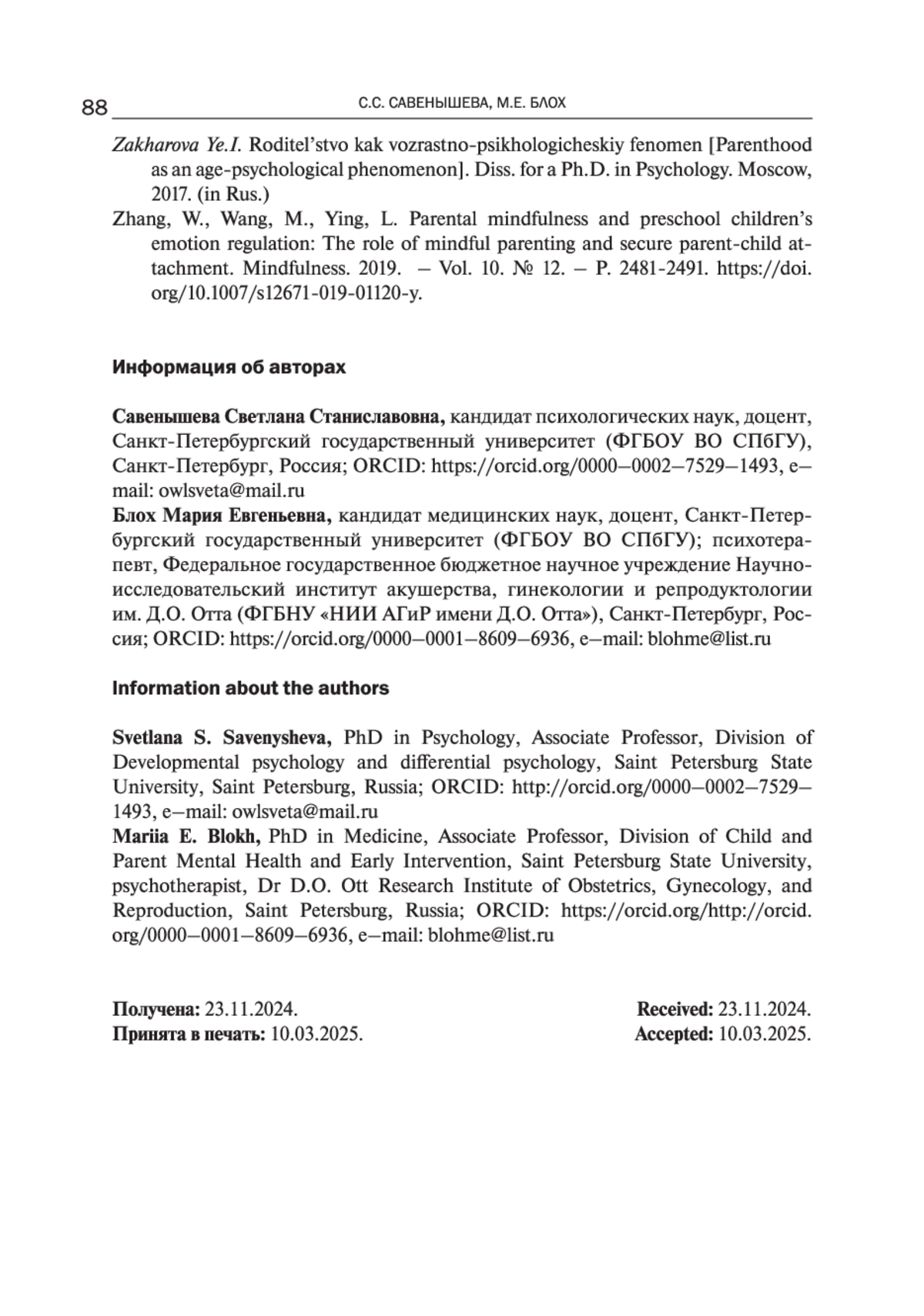 29. Zhang, W., Wang, M., Ying, L. Parental mindfulness and preschool children’s emotion regulation: The role of mindful parenting and secure parent-child attachment. Mindfulness. 2019. - Vol. 10. № 12. - Р. 2481-2491.