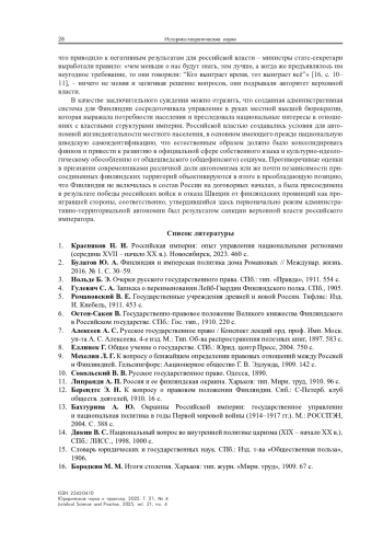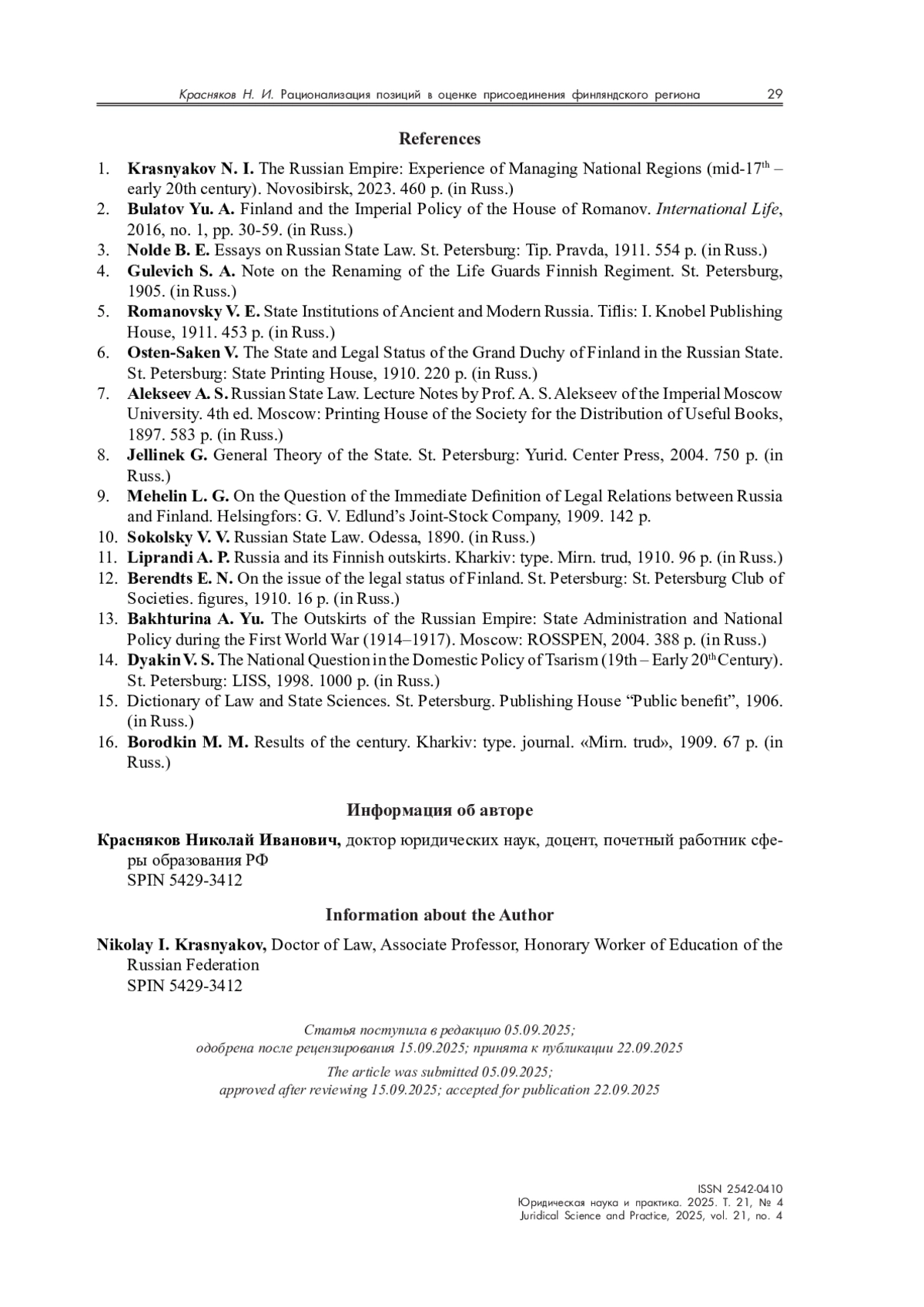 1. Красняков Н. И. Российская империя: опыт управления национальными регионами (середина XVII - начало XX в.). Новосибирск, 2023. 460 с.