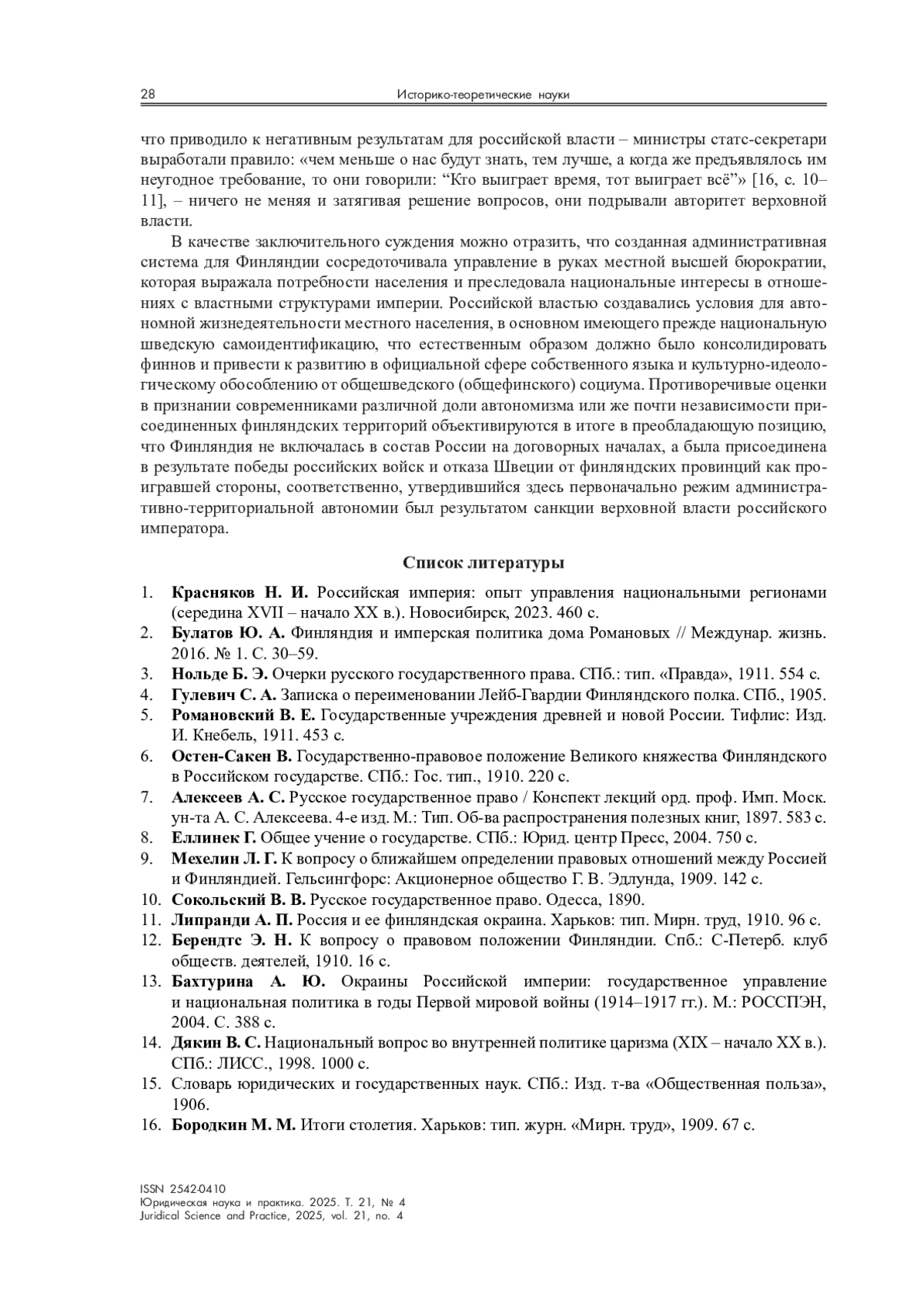 2. Булатов Ю. А. Финляндия и имперская политика дома Романовых // Междунар. жизнь. 2016. № 1. С. 30-59.