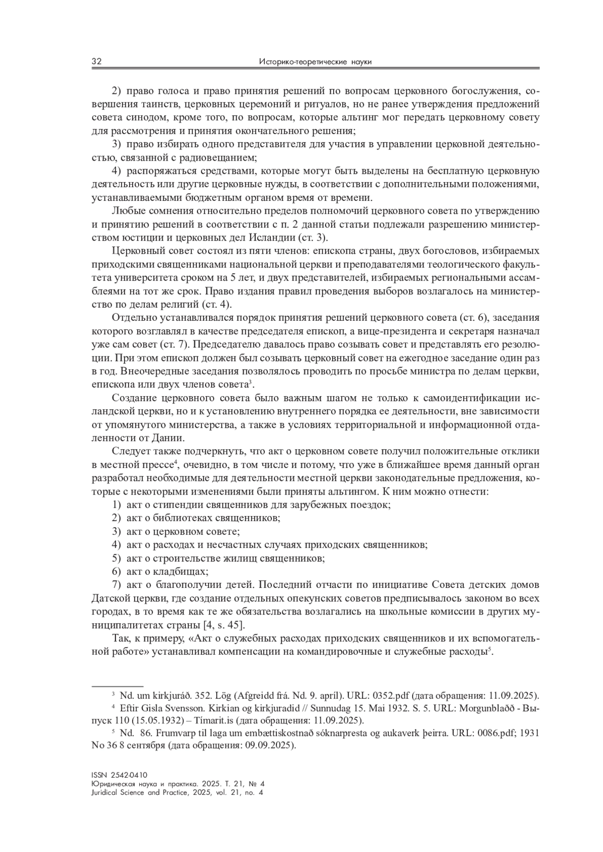 4. Church handbook 1935 edited by paul nedergaard priest at elias church. published on the order of the Danish priests’ association. - Gyldendalske boghandel-nordisk forlag - Copenhagen - MDCCCCXXXV. Printed in denmark gyldendals forlagstrykkeri Copenhagen. P. 47. URL: Kirkelig Haandbog, 1935 Den Danske Præsteforening (дата обращения: 10.09.2025). 5. Eftir Gisla Svensson. Kirkian og kirkjuradid // Sunnudag 15. Mai 1932. S.