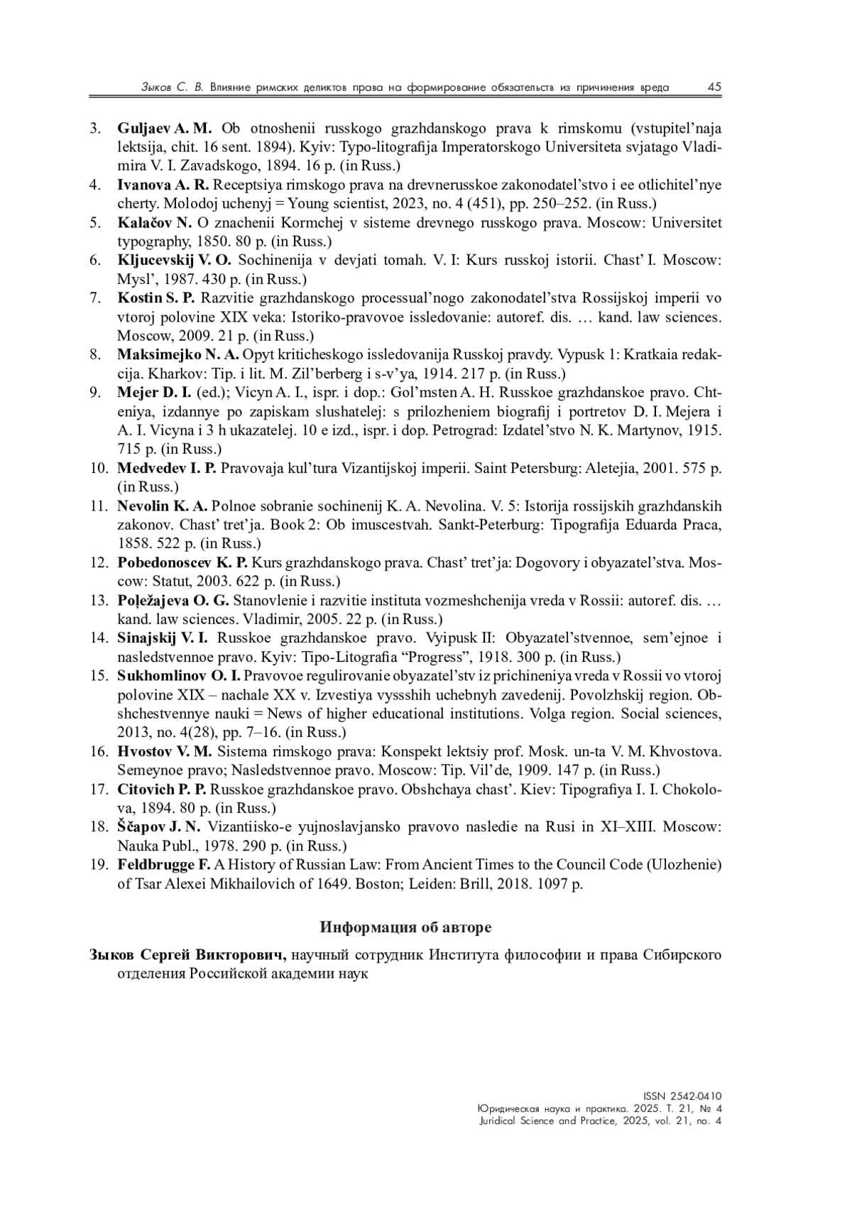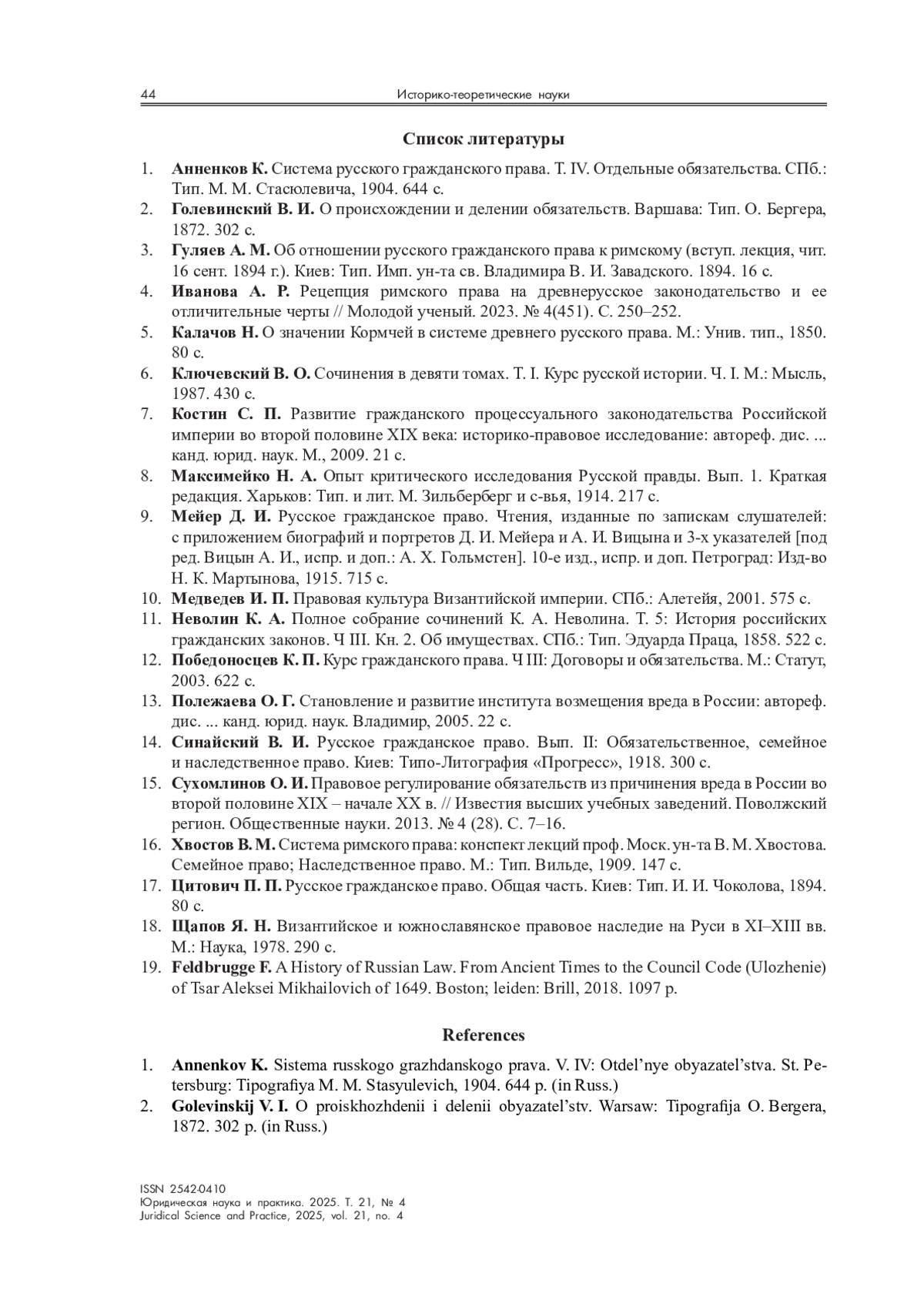19. Feldbrugge F. A History of Russian Law. From Ancient Times to the Council Code (Ulozhenie) of Tsar Aleksei Mikhailovich of 1649. Boston; leiden: Brill, 2018. 1097 р.