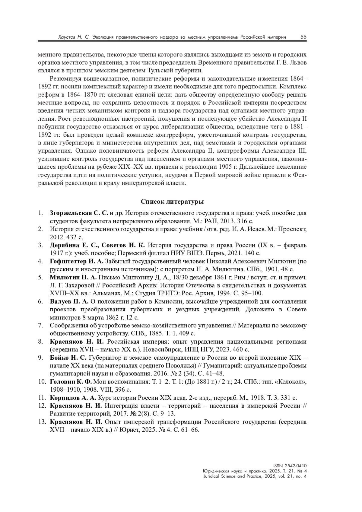 14. Гармоза П. В. Власть как категория юридической науки // Государство и право. 2008. № 5. С. 82-85.