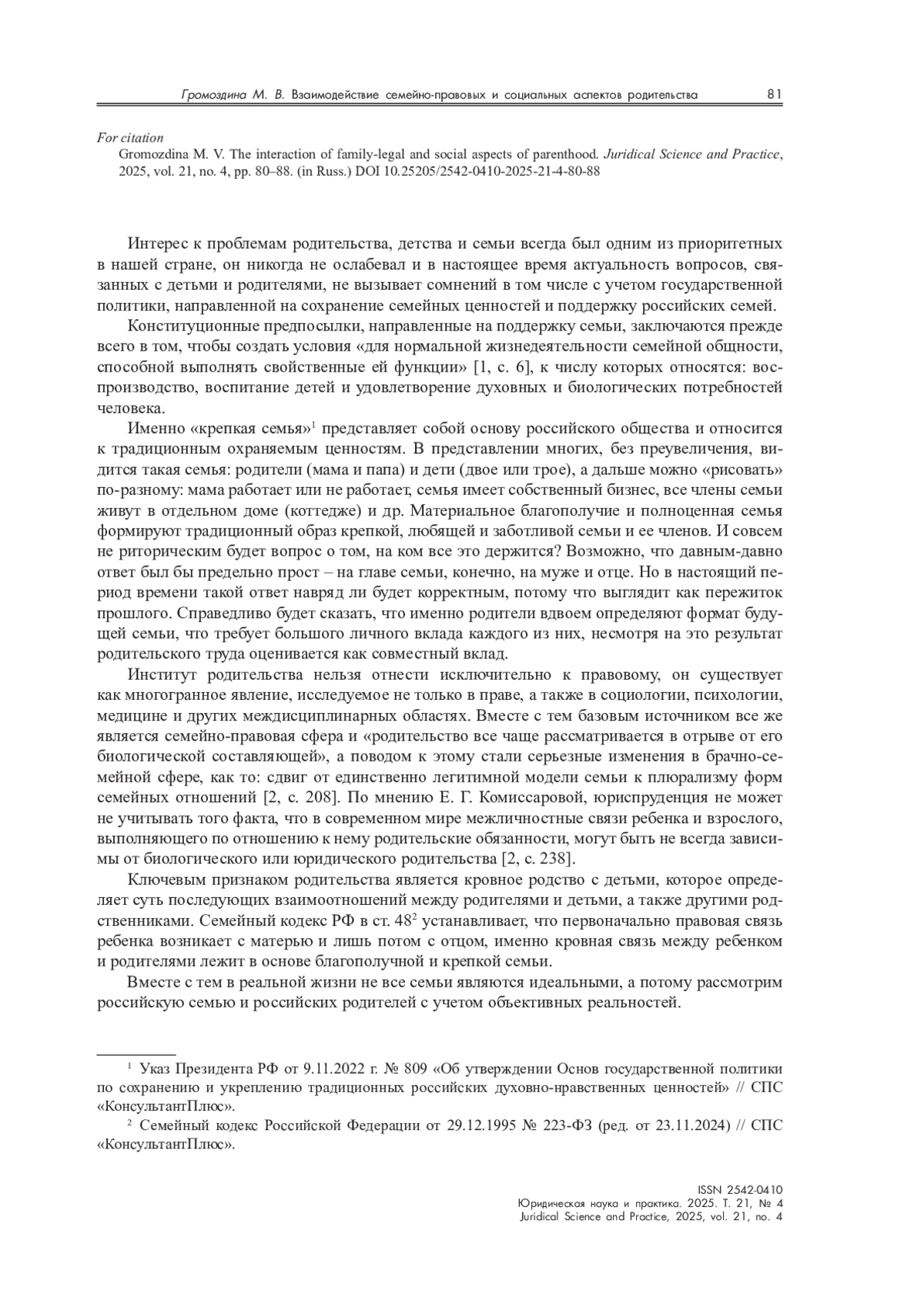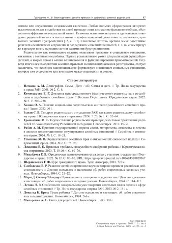 2. Комиссарова Е. Г. Доктрина непосредственного (фактического) родительства в российском и зарубежном семейном праве // Вестник Перм. ун-та. Юридические науки. 2022. № 2. С. 208-238.