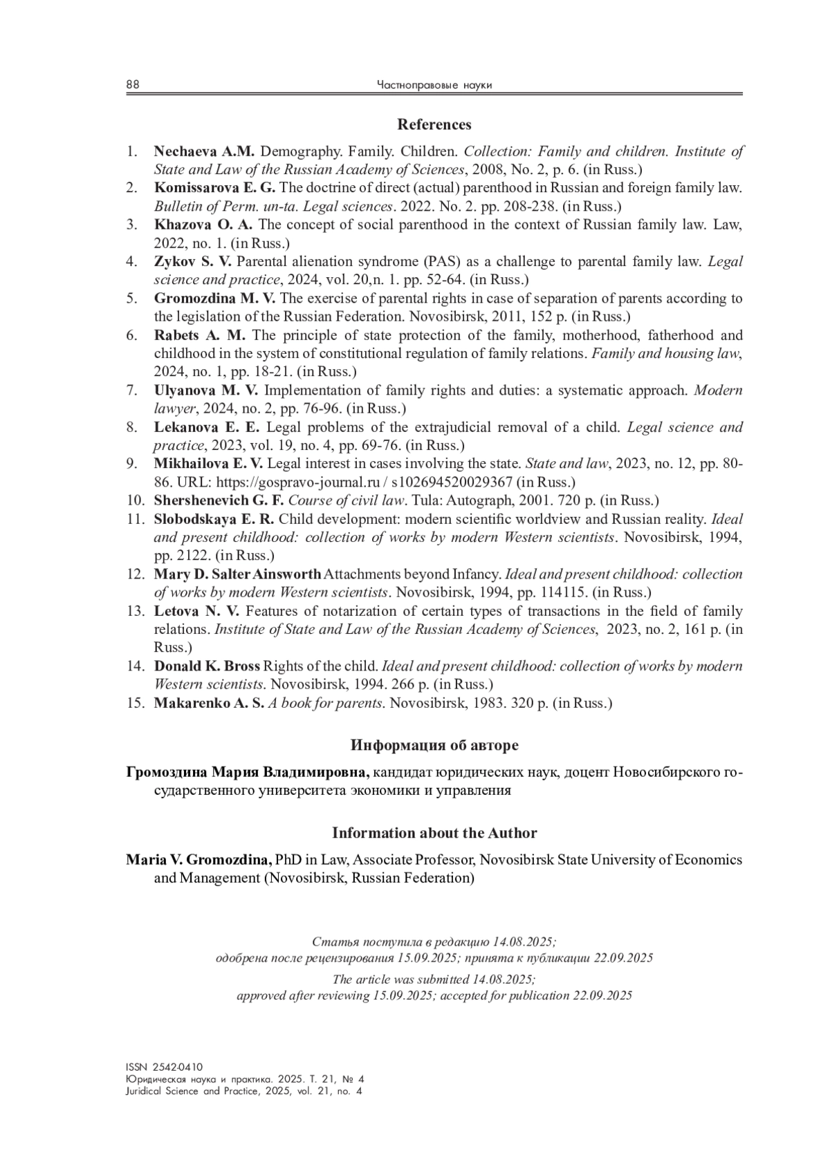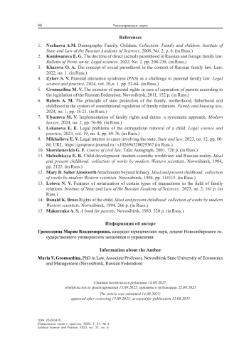 3. Хазова О. А. Понятие социального родительства в контексте российского семейного права // Закон. 2022. № 1.