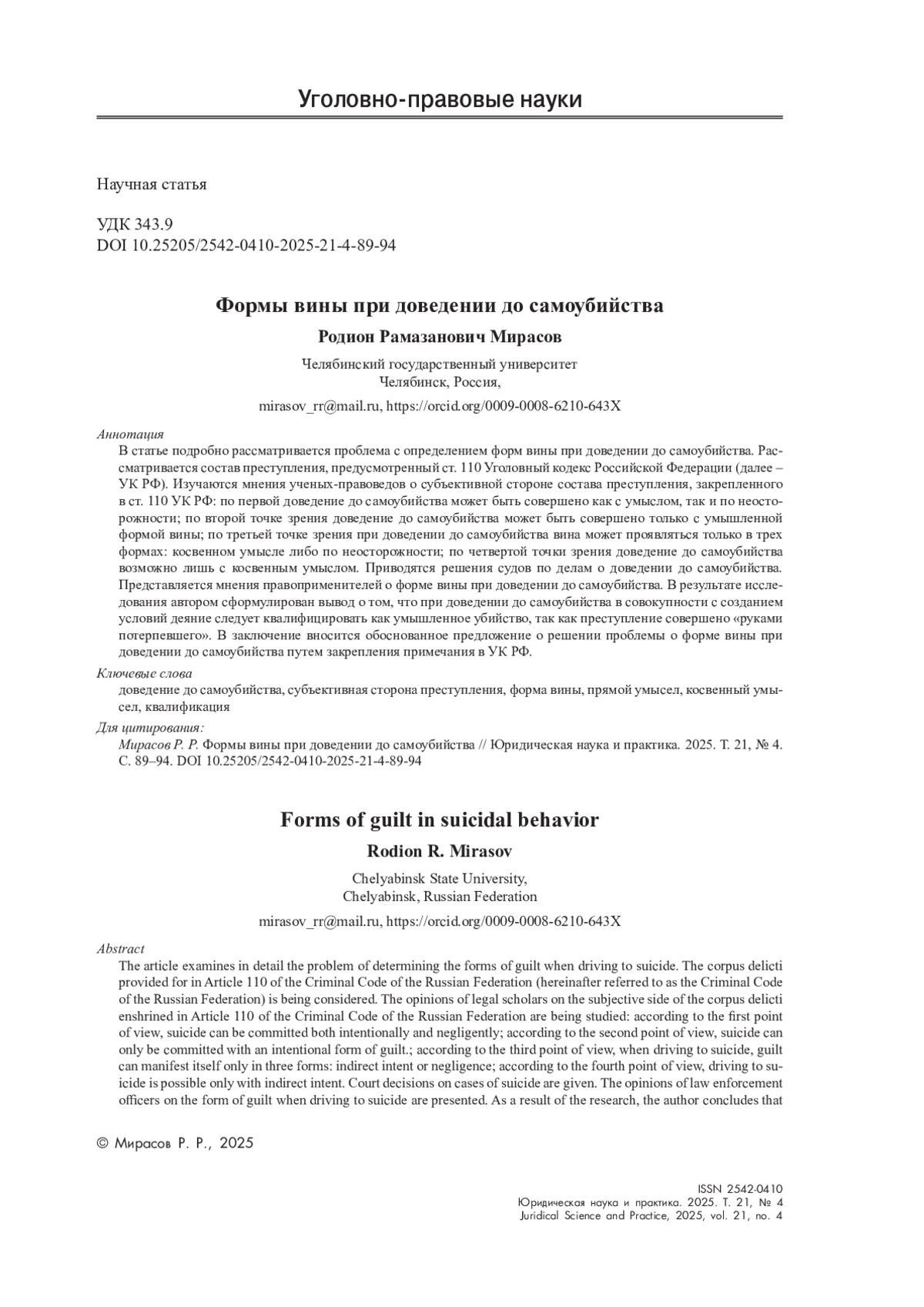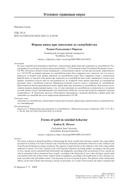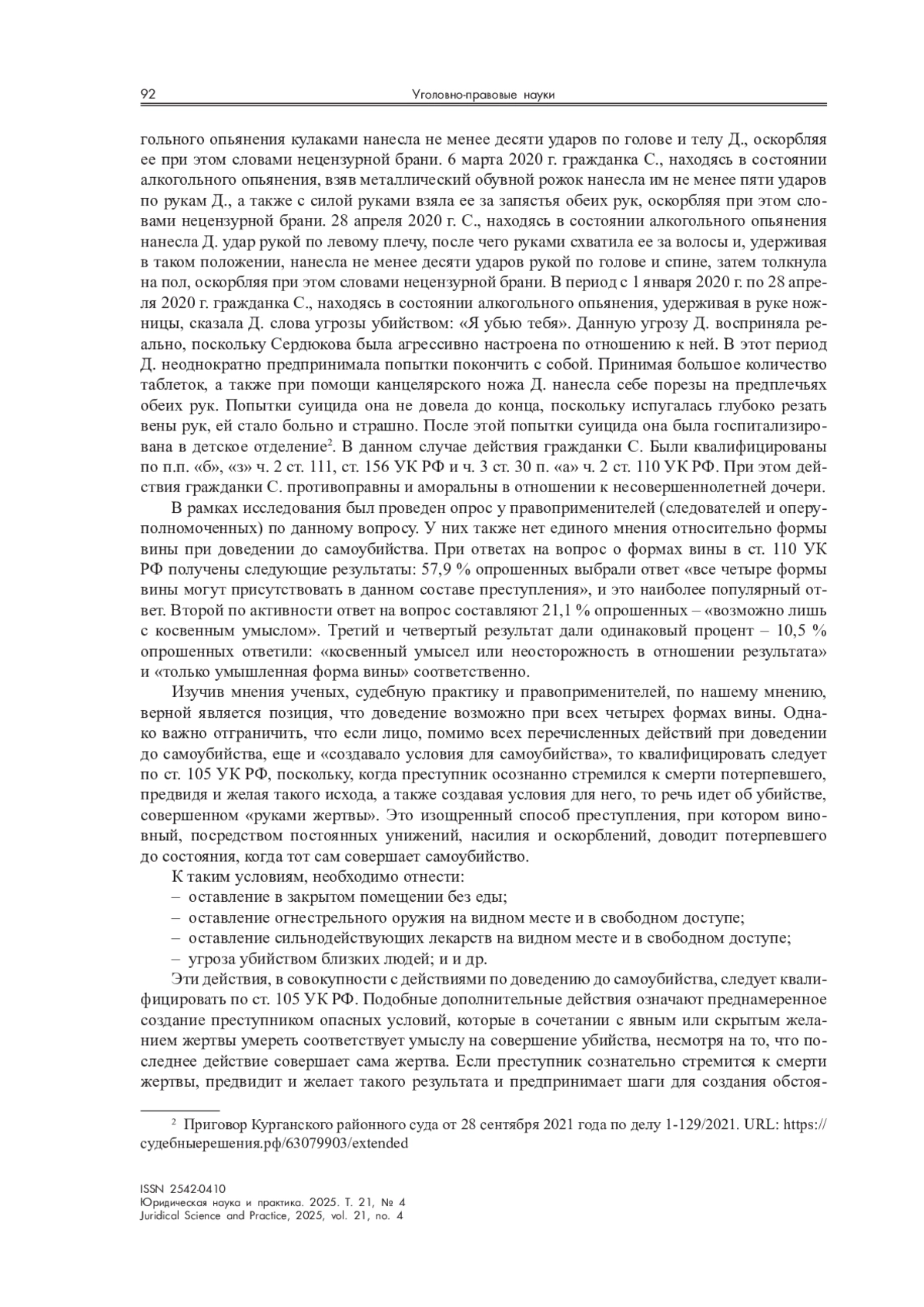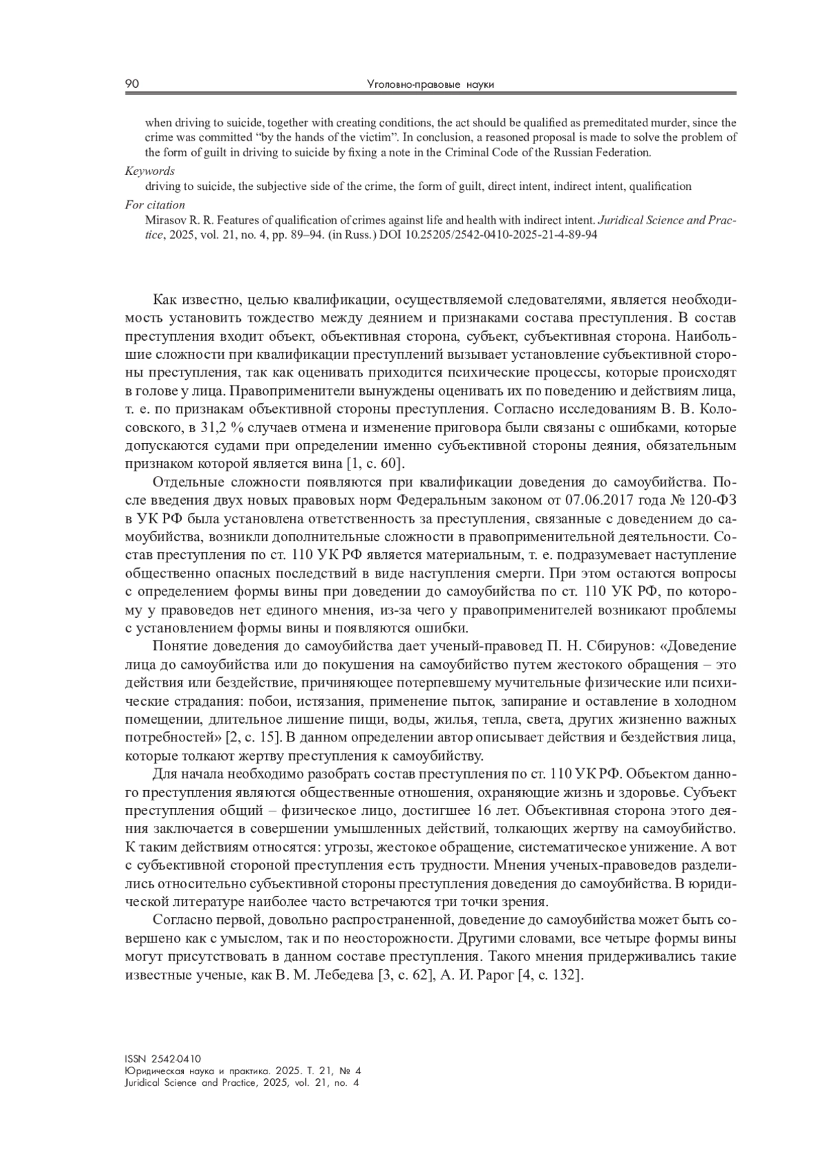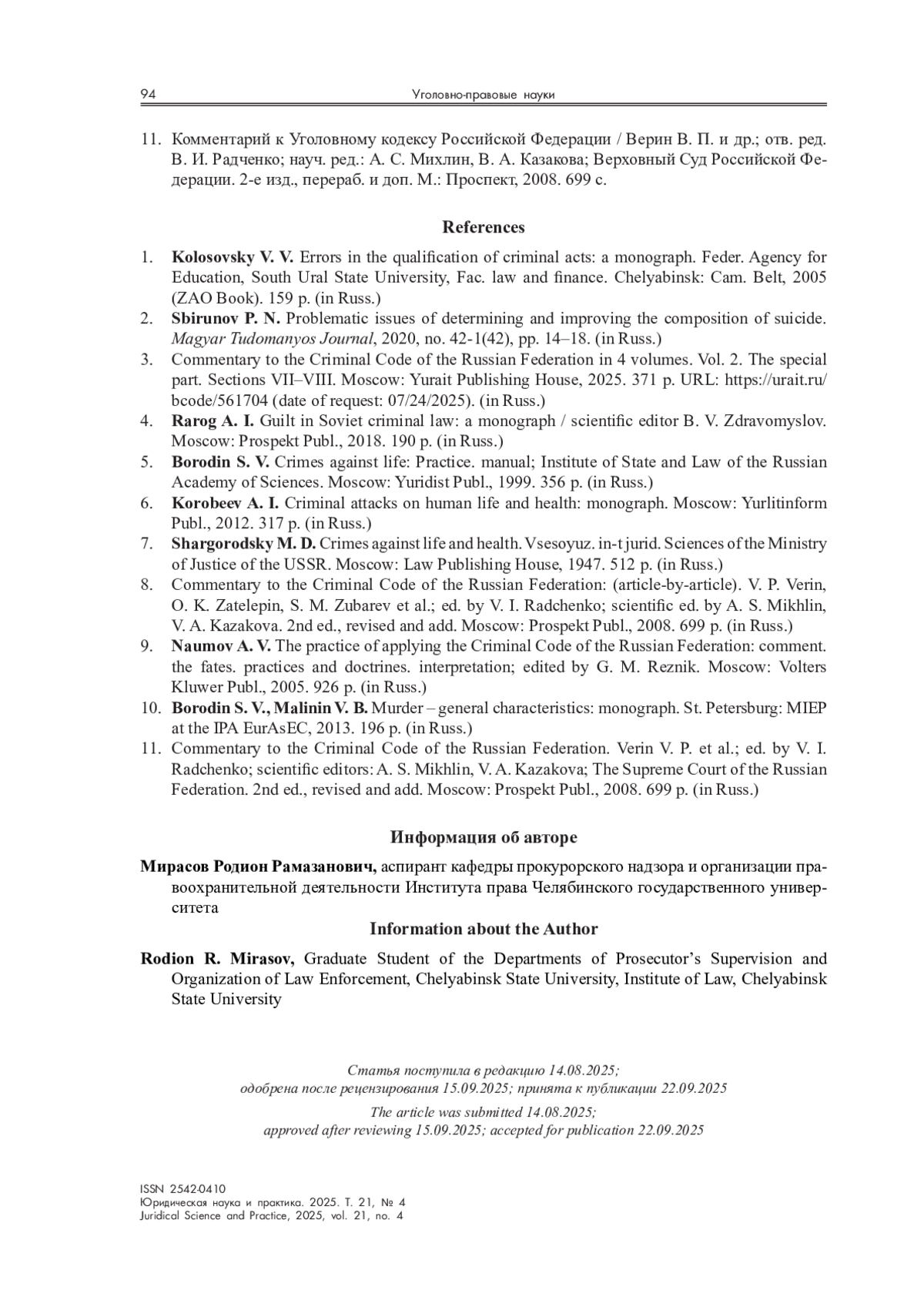 2. Сбирунов П. Н. Проблемные вопросы определения и совершенствования состава доведения до самоубийства // Magyar Tudományos Journal. 2020. № 42-1(42). С. 14-18.