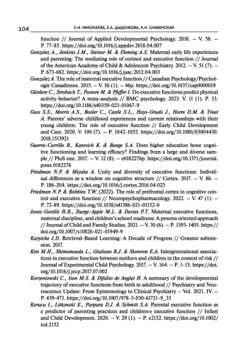 19. Gonzalez A. The role of maternal executive function // Canadian Psychology/Psychologie Canadienne. 2015. - V. 56 (1). - 46p. DOI: 10.1037/cap0000019