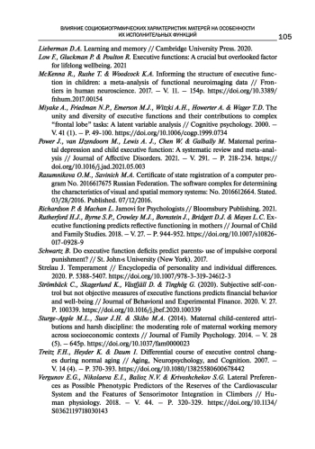 34. Power J., van IJzendoorn M., Lewis A.J., Chen W. & Galbally M. Maternal perinatal depression and child executive function: A systematic review and meta-analysis // Journal of Affective Disorders. 2021. - V. 291. - P. 218-234. DOI: 10.1016/j.jad.2021.05.003