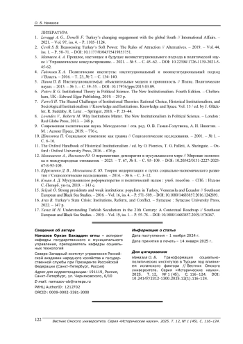 16. Aras B. Turkey’s State Crisis: Institutions, Reform, and Conflict. - Syracuse: Syracuse University Press, 2022. - 147 p.