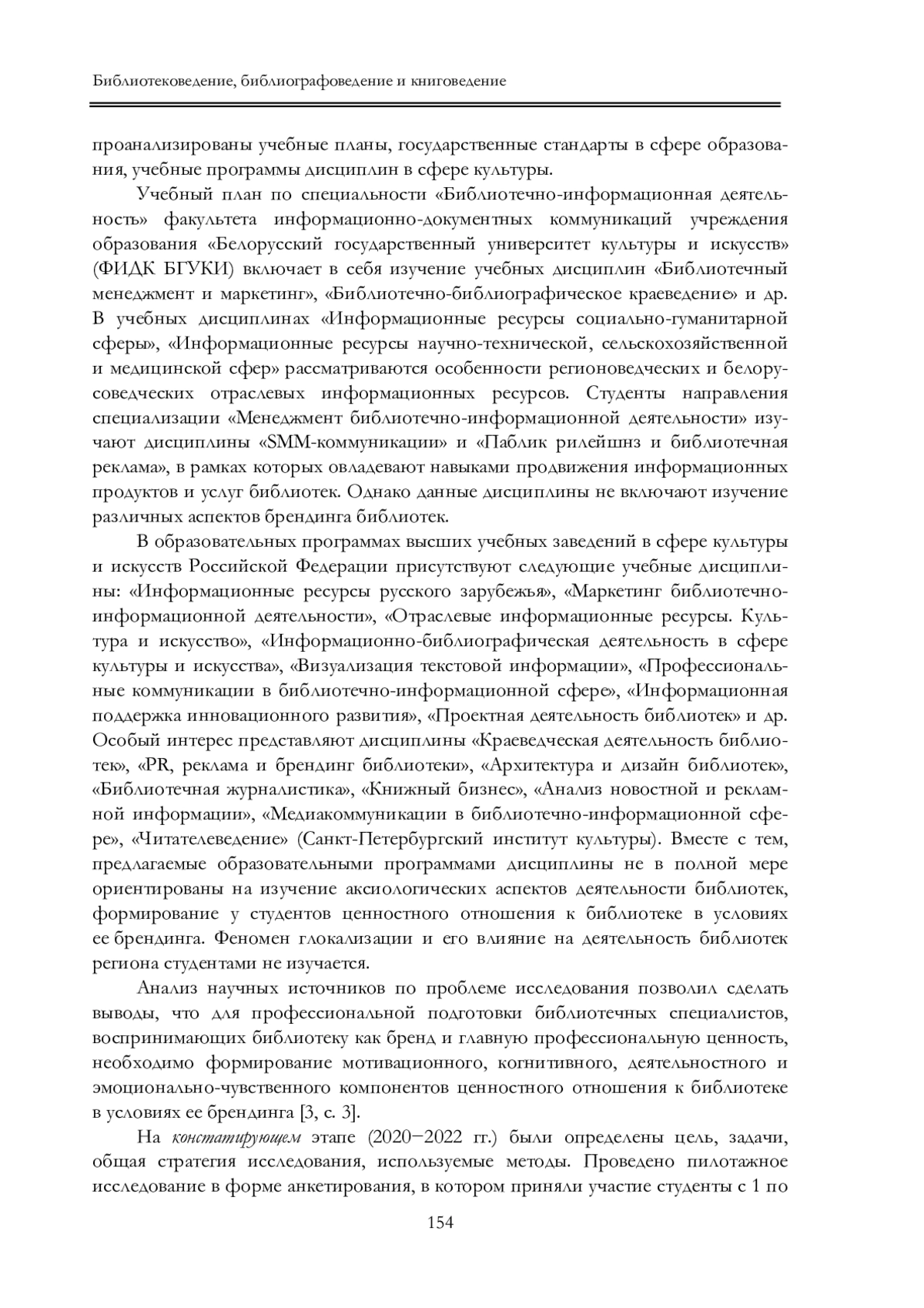 1. Быстрова Е.С. К разработке понятий «бренд библиотеки», «ценностное отно шение к библиотеке как бренду» / Е.С. Быстрова // Научные труды Республиканского института высшей школы: сб. науч. ст. Минск, 2022. С. 46-55.