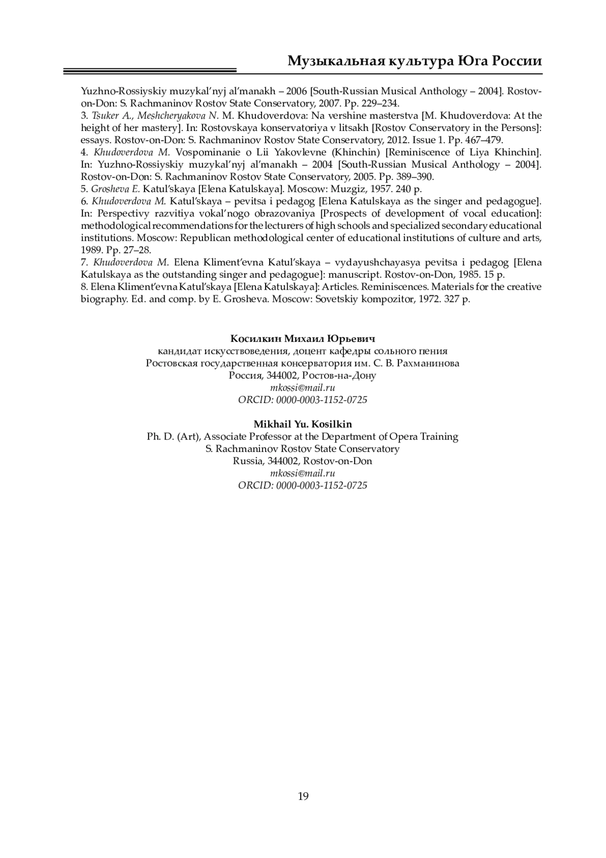 7. Худовердова М. Н. Елена Климентьевна Катульская - выдающаяся певица и педагог: рукопись. Ростов н/Д, 1985. 16 c.