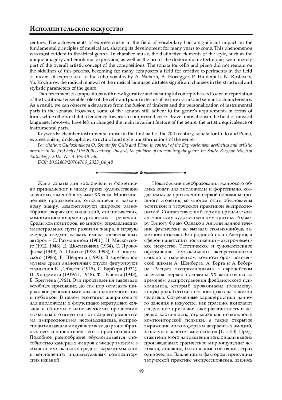 6. Гудожникова О. Н. Соната для виолончели и фортепиано в отечественной музыке XIХ-XX веков: эволюция и особенности стиля: дис. … канд. иск. (17.00.02). Магнитогорск, 2017. 227 с. EDN: XWYMVR