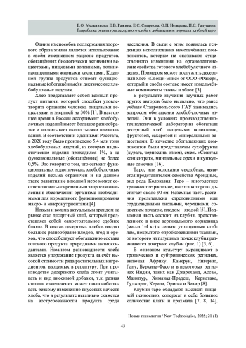 4. Shakhrai T.A., Vorob’eva O.V., Viktorova E.P. Osnovnye tendentsii razvitiya rynka funktsional’nykh khlebobulochnykh izdelii // Novye tekhnologii. 2021. Vyp. 3. S. 51-58.