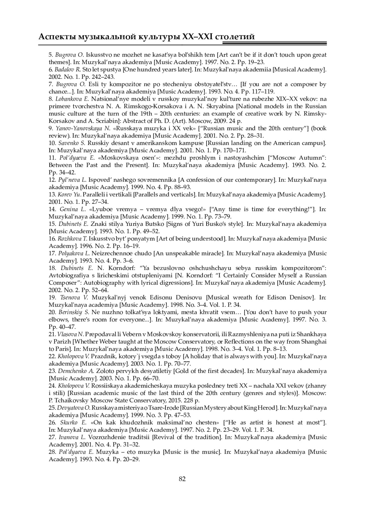 9. Янов-Яновская Н. С. “Русская музыка и XX век” [рецензия на книгу] // Музыкальная академия. 2001. № 2. С. 28-31.