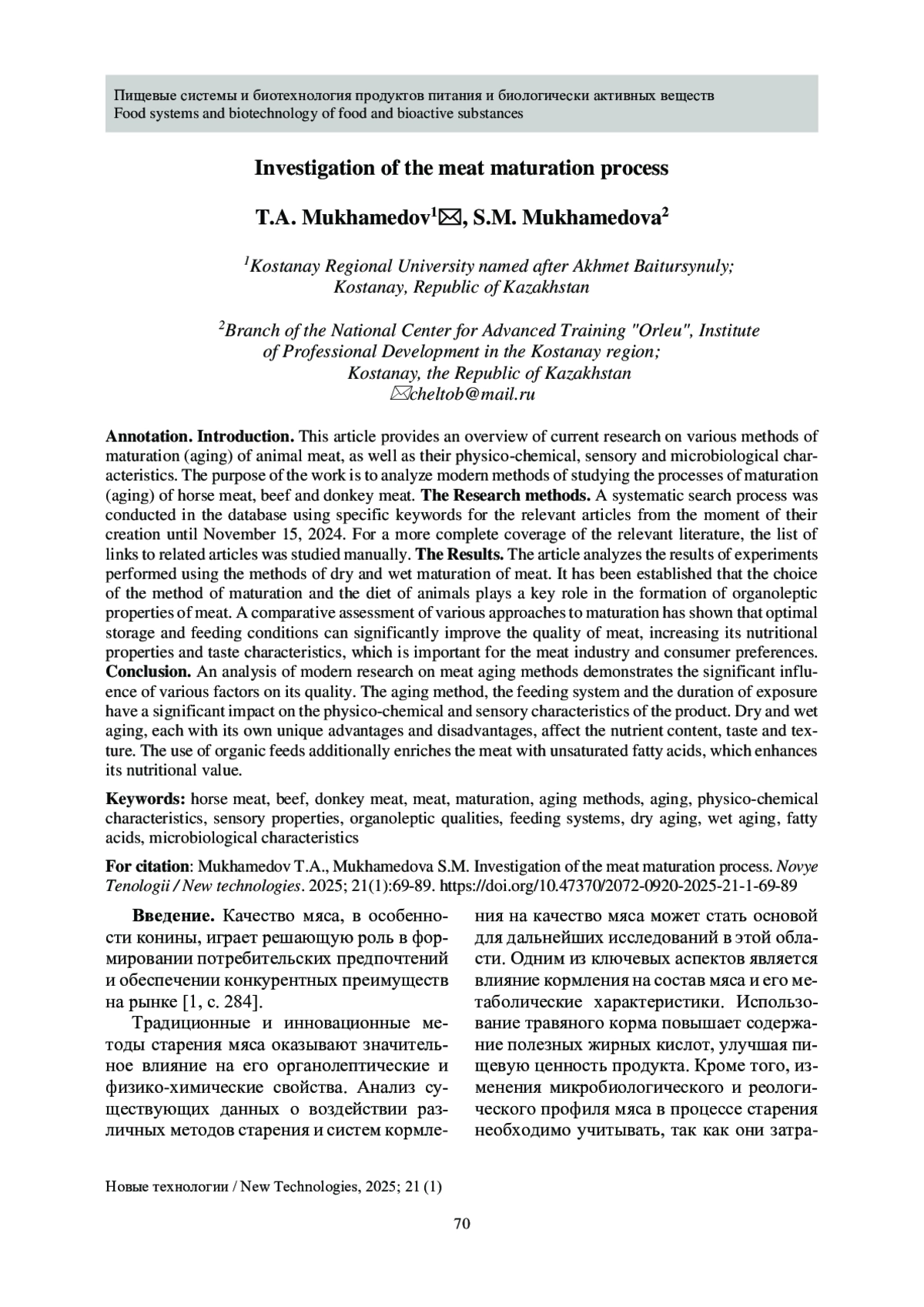 38. Mukhamedov T.A. Khimicheskii i mineral’nyi sostav koniny sukhogo i vlazhnogo sozrevaniya // Innovatsii v nauke: vyzovy i perspektivy budushchego: sbornik statei. Saratov: Tsifrovaya nauka, 2024. S. 12-18.