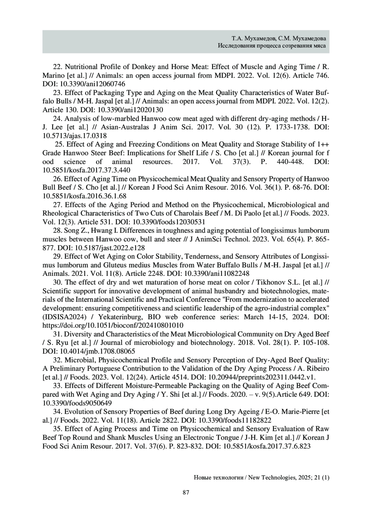 24. Analysis of low-marbled Hanwoo cow meat aged with different dry-aging methods / HJ. Lee [et al.] // Asian-Australas J Anim Sci. 2017. Vol. 30 (12). P. 1733-1738. https://doi.org/10.5713/ajas.17.0318