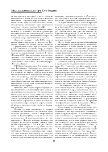 15. Скрыбыкина Ч. К. Гармония в музыке современных якутских композиторов (о претворении национального звукотембрового идеала средствами колористики и сонорики: автореф. дис.. канд. иск. (17.00.02). Магнитогорск, 2008. 24 с. EDN: ZNUDET