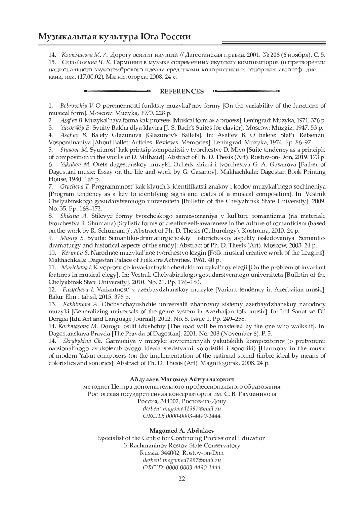 13. Рахимова А. Э. Обобщающие универсалии жанровой системы азербайджанской народной музыки // Idil Sanat ve Dil Dergisi. 2012. № 5. Вып. 1. С. 249-258.