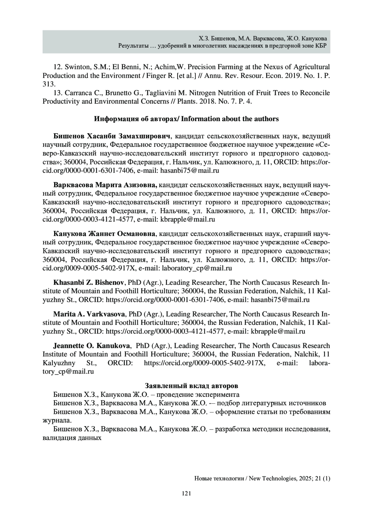 13. Carranca C., Brunetto G., Tagliavini M. Nitrogen Nutrition of Fruit Trees to Reconcile Productivity and Environmental Concerns // Plantsyu 2018. No. 7. P. 4.