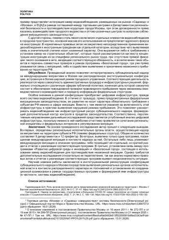 1. Гаджимурадов Ш.А. Роль органов внутренних дел в предупреждении незаконной миграции на территории г. Москвы // Вестник экономической безопасности. 2023. № 5. С. 37-41. DOI: 10.24412/2414-3995-2023-5-37-41