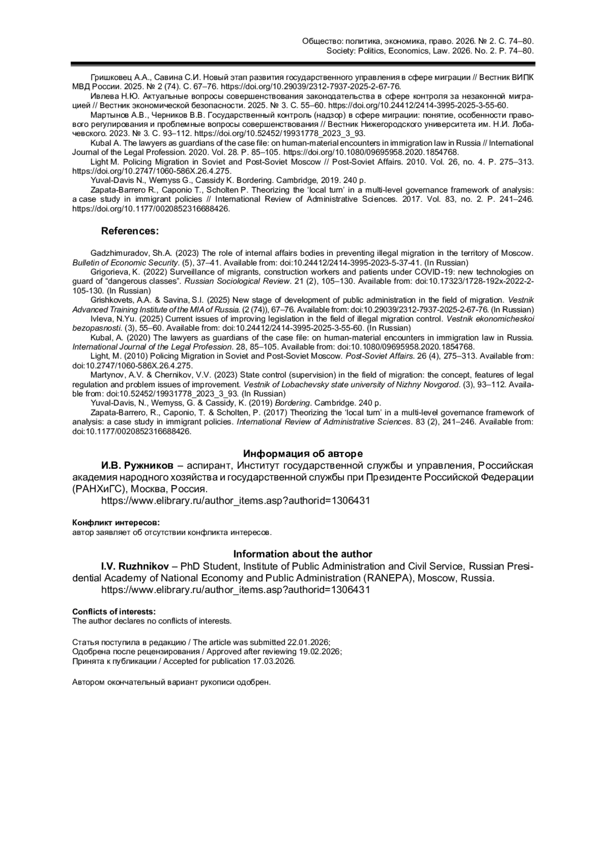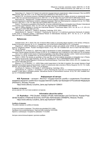 3. Гришковец А.А., Савина С.И. Новый этап развития государственного управления в сфере миграции // Вестник ВИПК МВД России. 2025. № 2 (74). С. 67-76. DOI: 10.29039/2312-7937-2025-2-67-76