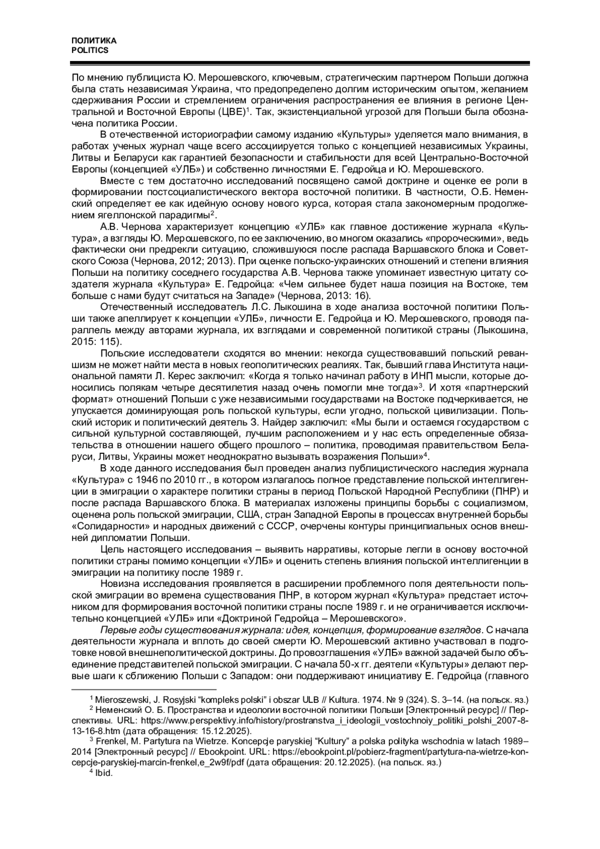 3. Чернова А.В. “Восточная политика” Польши: от концепции “УЛБ” до “Восточного партнерства” // Вестник МГИМО-Университета. 2013. № 6 (33). С. 15-24. EDN: RQDLWZ